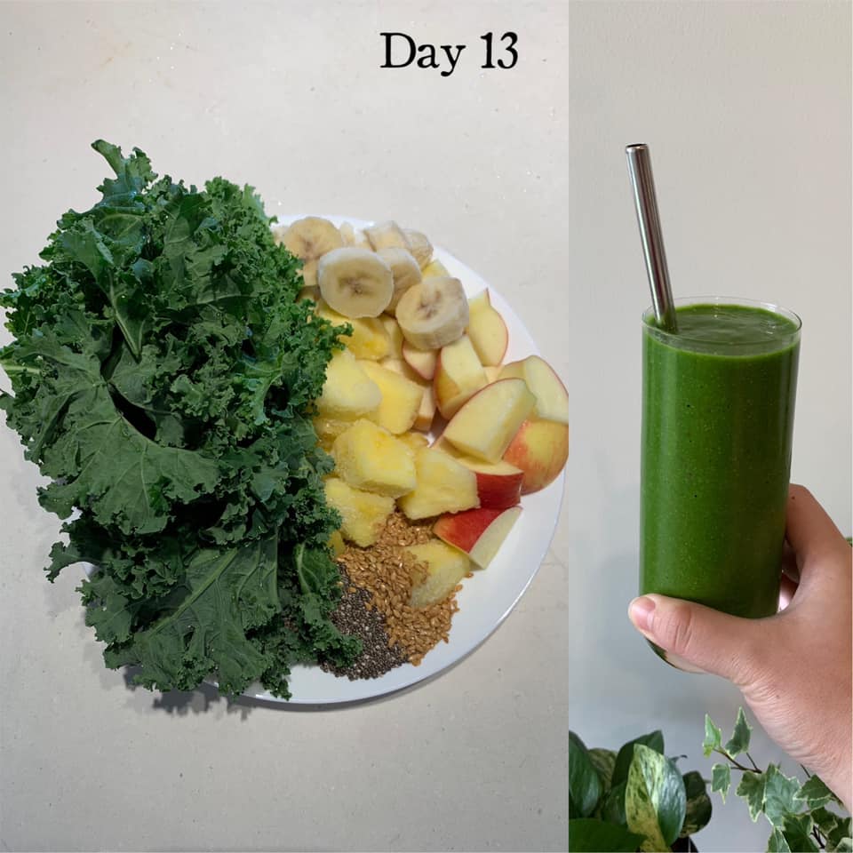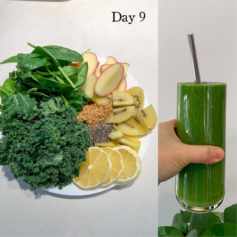 Bắt đầu hành trình, mỗi ngày khi ngủ dậy mình uống 1 ly nước ấm với dấm táo (Apple Cinder Vinegar). Mình đã cắt bỏ hoàn toàn 3 bữa ăn chính thay vào đó là 3 ly sinh tố detox để giảm cân được hiệu quả. Trong ngày mình bổ sung rất nhiều nước vừa giúp hỗ trợ quá trình thanh lọc cơ thể vừa giúp no nê giảm cảm giác thèm ăn. Khoảng 3 ngày đầu tiên, vẫn rất tung tăng và tươi vui chưa có dấu hiệu thèm ăn, qua tầm ngày thứ 10 đến gần ngày cuối thì thèm ăn kinh khủng. Nhưng mình vẫn tự nhủ phải cố lên vì nếu bỏ cuộc thì coi như những ngày trước đổ sông đổ bể.