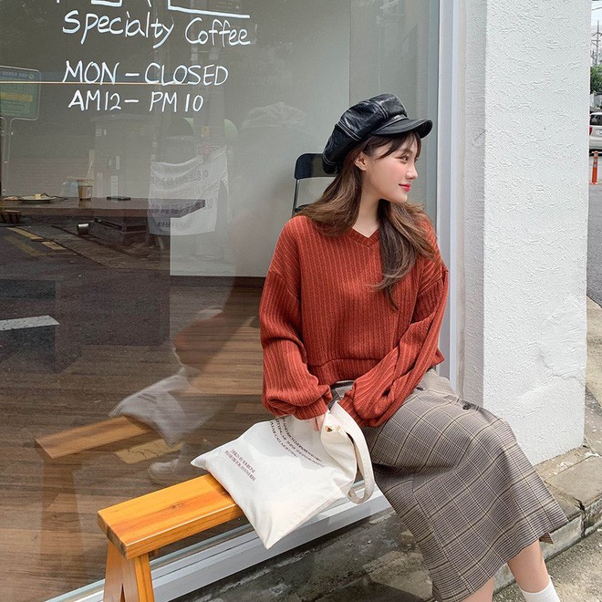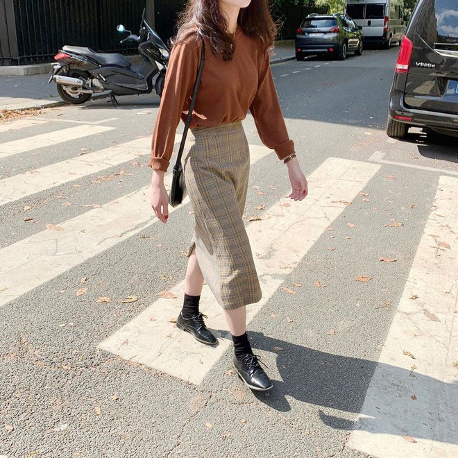 Công thức mặc đẹp mà bạn nên ghim ngay và áp dụng vào những hôm thời tiết lạnh dần chính là áo len + chân váy dài yểu điệu. Để vẻ ngoài ấn tượng, xinh xắn hơn, tốt nhất là bạn nên chọn kiểu váy xếp ly/kẻ ô thời thượng; hoặc nhấn nhá tổng thể bằng một đôi boots/sneaker/loafer.
