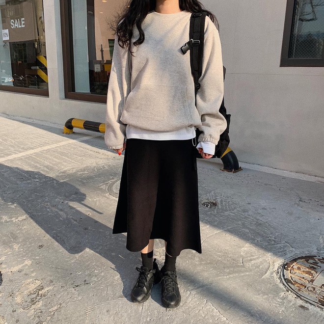 Chân váy dài + áo nỉ