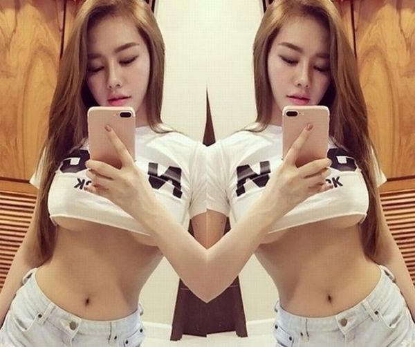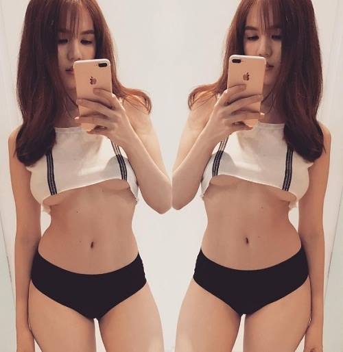 Không chịu thua kém đàn chị, Linh Chi cũng khoe vóc dáng bốc lửa không kém cạnh với trào lưu kỳ lạ này. Chiếc áo ngắn cũn để lộ vòng 1 đồ sộ của người đẹp.
