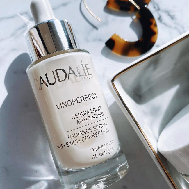 Song song với lọ serum của Nuxe, nàng người Pháp này còn dùng thêm cả serum của Caudalie. Sản phẩm sẽ tập trung xử lý những đốm nâu, sẹo mụn để cho bạn làn da mịn màng và tươi sáng hơn. Đây là lựa chọn tuyệt vời cho quy trình chống lão hóa ở tuổi 30+.