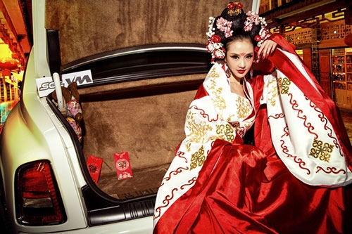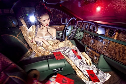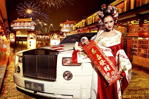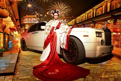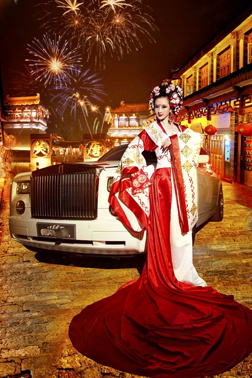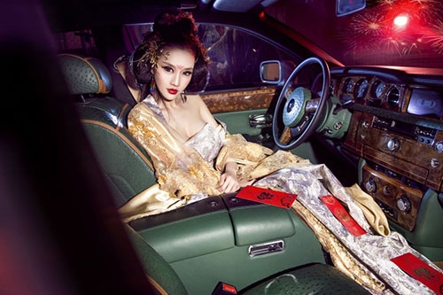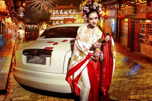 Rolls-Royce là một trong những chiếc xe siêu sang bậc nhất làng xế hộp, nhưng trước hình ảnh nữ hoàng đế Võ Tắc Thiên đầy gợi cảm do người đẹp Yi Yan cải trang thì nó cũng hoàn toàn bị lu mờ.