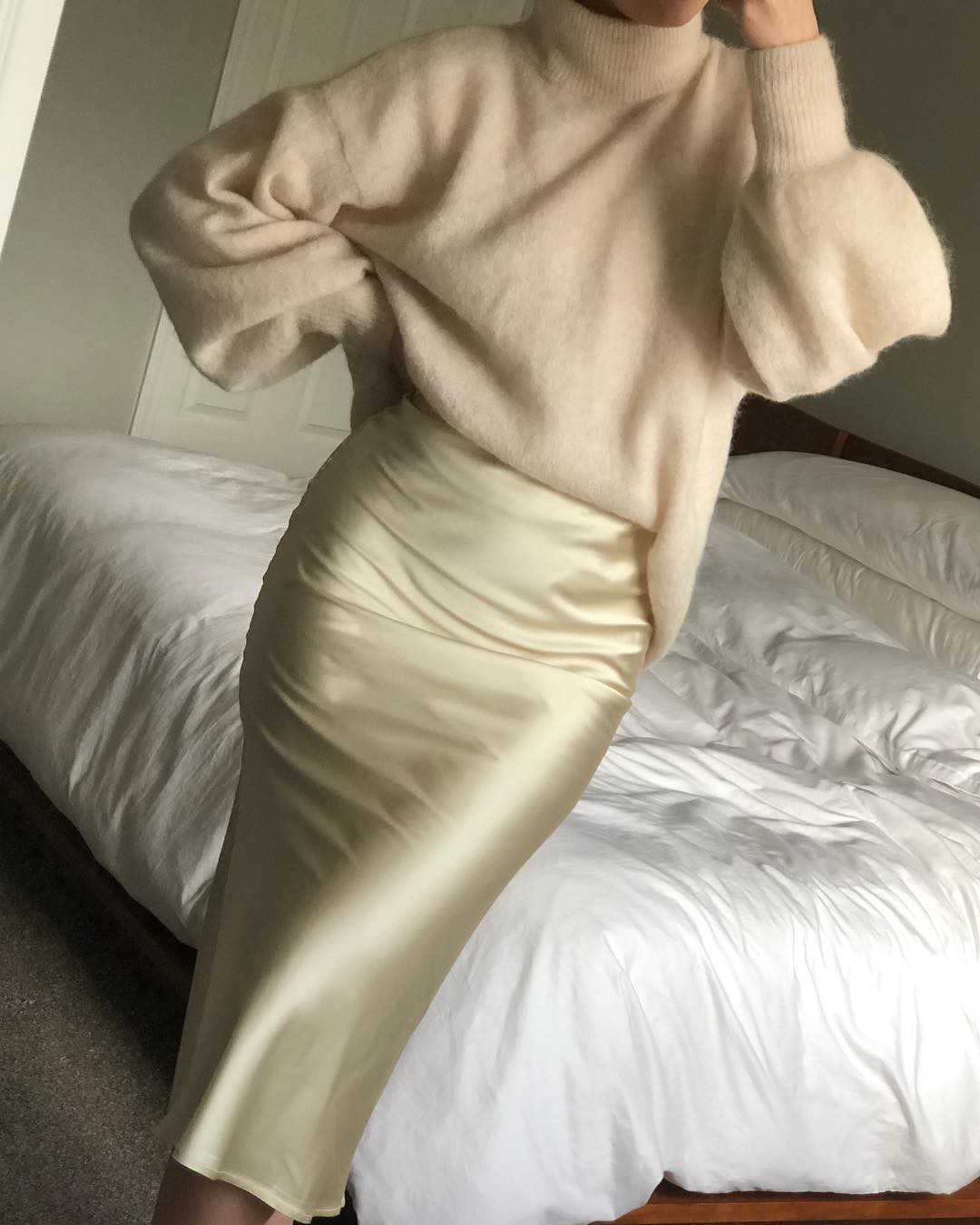 Chất liệu lụa bóng luôn mang đến cho bạn một sự sang trọng và thu hút nhất định. Dễ mặc nhất là áo sơ mi lụa bóng, với items này, mix cùng quần jeans hay quần vải đều đẹp. Tuy nhiên lưu ý đồ lụa bóng rất dễ làm bạn trông sến sẩm nếu quá tham phụ kiện hoặc mix cùng đồ nhiều màu sắc.