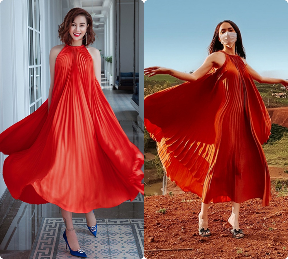 Từ đầu hè đến giờ, các người đẹp Việt đồng loạt lăng xê một mẫu váy maxi cổ yếm với những đường ly sắc nét bay bổng, thiết kế như thể dành riêng cho chuyến đi biển của phái đẹp. Với màu sắc sặc sỡ tươi vui cùng phom dáng thướt tha xòe rộng, bộ đầm hợp với mọi vóc dáng, ngay cả nàng bầu bí hay tự ti về vòng bụng thiếu thon gọn cũng diện lên vô cùng duyên dáng ngọt ngào. Ngắm Instagram của sao Việt, bạn sẽ thấy cả dàn sao đang mê mẩn một thiết kế với những gam màu khác nhau, thi nhau khoe dáng gợi cảm kiêu kỳ khiến chị em mê mệt.