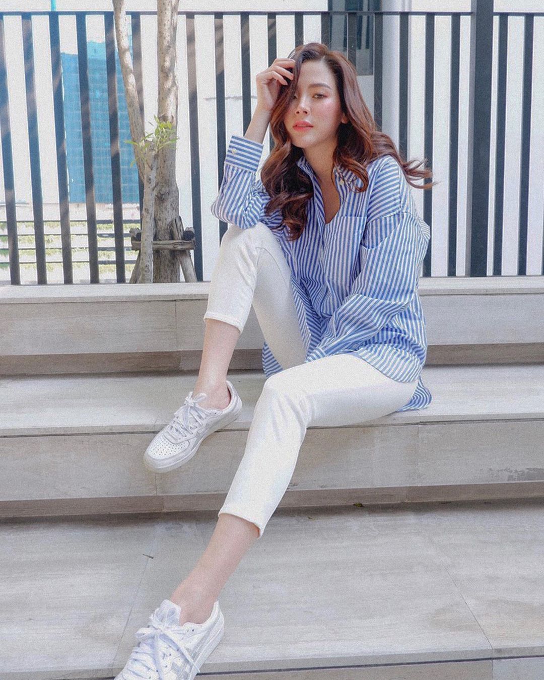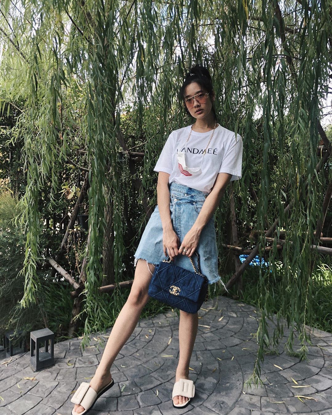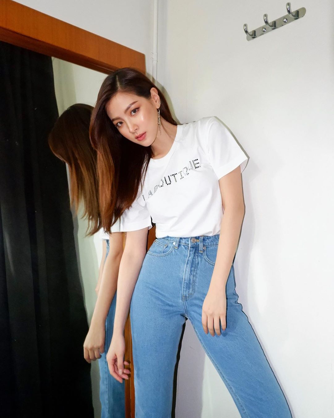 Áo thun trắng là item cơ bản nhất nhưng vẫn thừa sức mang đến cho người diện những set đồ thú vị, xịn đẹp. Các mỹ nhân Thái thường ưu tiên áo thun trơn màu nhưng cũng không hề ngó lơ những phiên bản in chữ bắt mắt. Với kiểu áo dễ tính như t-shirt trắng, chị em dễ dàng mix được những set đồ hài hòa nên hãy linh hoạt biến tấu với loạt items như: quần shorts, quần jeans ống đứng, ống rộng cho đến quần âu màu mè. Cuối cùng, hãy học theo các mỹ nhân Thái, luôn sơ vin để nâng cấp vẻ thời thượng cho cả tổng thể.