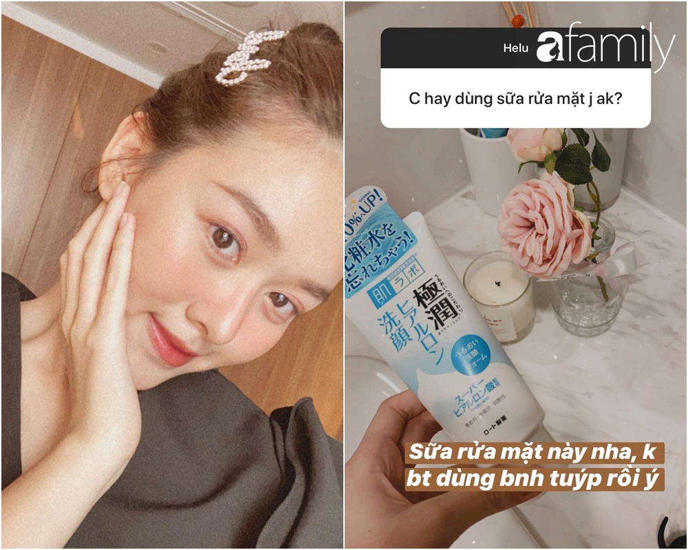 Sản phẩm mà nàng Á hậu đã sử dụng là sữa rửa mặt Hada Labo Gokujyun Face Wash nhập khẩu từ Nhật Bản có giá khoảng 190.000 VNĐ/100g. Với công thức tạo bọt mềm mại lại có nhiều thành phần dưỡng ẩm, loại sữa rửa mặt này giúp làm sạch da nhẹ nhàng mà vẫn mềm mượt căng mướt. Em sữa rửa mặt này có độ pH cân bằng không chứa dầu khoáng, không sử dụng chất tạo màu, tạo mù nên khá lành tính, phù hợp với mọi loại da đặc biệt là da khô.