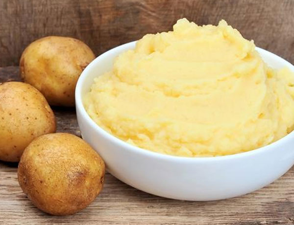 - Nghiền nhuyễn khoai tây vào một chén nhỏ rồi thêm 2 thìa nước cốt chanh, trộn đều.