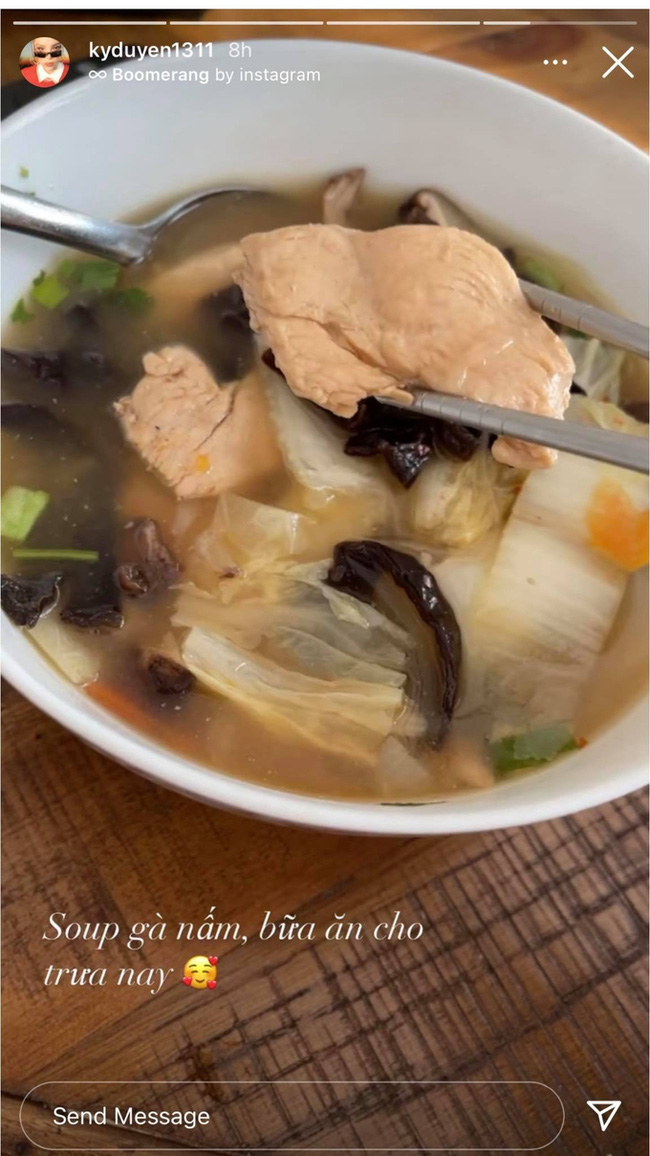 Mới đây, trên instagram cá nhân, hoa hậu Kỳ Duyên chia sẻ súp gà nấm - một trong những món ăn rất điển hình của thực đơn Eat Clean. Được biết, nhờ theo đuổi chế độ ăn này kết hợp tập gym, người đẹp đã siết eo siêu nhanh. Chỉ sau 7 ngày, hoa hậu xinh đẹp đã giảm hẳn 4cm vòng eo. Hiện tại vòng eo của cô là 64cm.