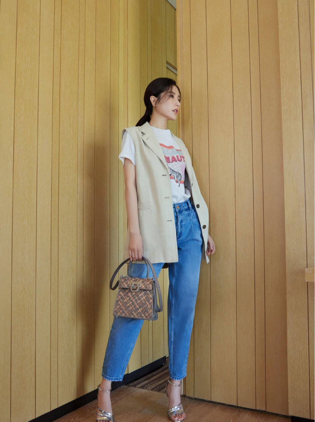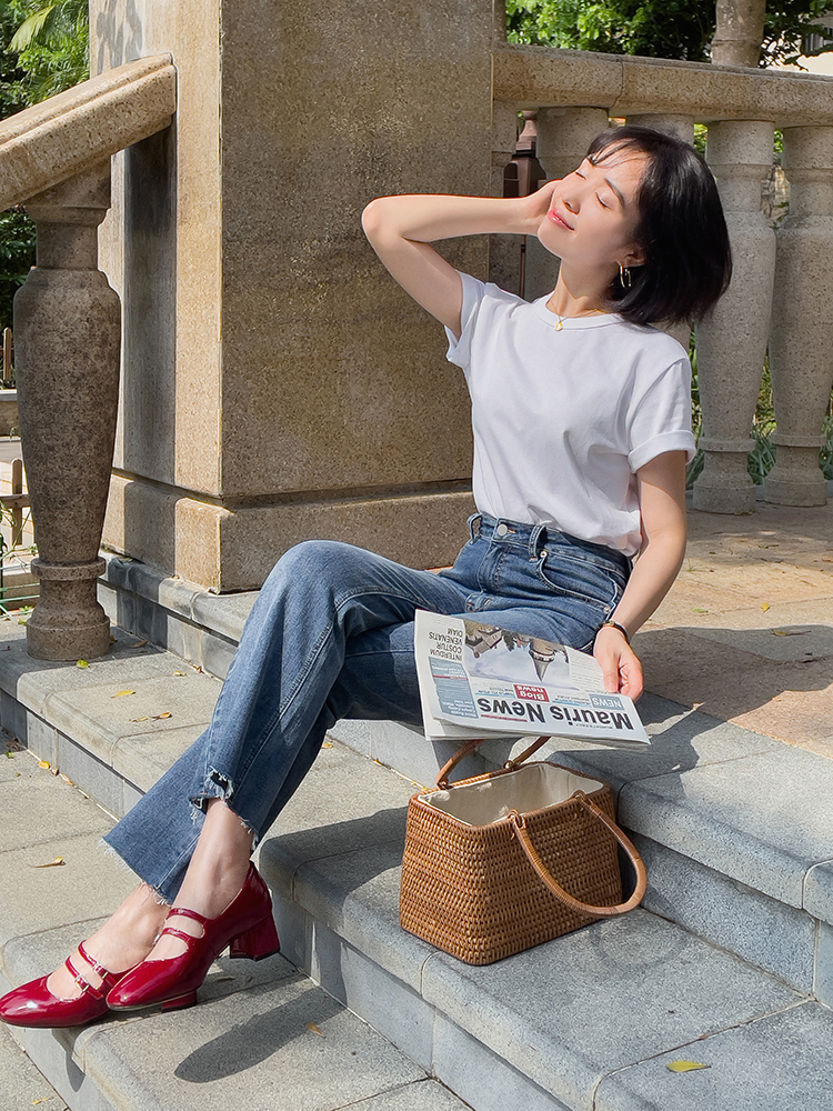 Quần jean là loại quần rất phổ biến và thông dụng, diện quần jeans cùng áo phông sẽ mang đến cho bạn cảm giác năng động, cá tính mà vẫn sang chảnh tuyệt đối. Bộ đôi combo này cũng cực kỳ dễ diện, dù diện đi làm hay đi chơi cũng đều hợp cả. Khi diện quần jeans và áo phông thì bạn đừng quên sơ vin để tạo cảm giác tôn dáng hiệu quả, bạn có thể sơ vin cả vạt áo chỉn chu hoặc chỉ sơ vin vạt trước, thả vạt sau phóng khoáng. Về phần giày dép, nếu theo style năng động thì bạn có thể chọn giày thể thao; còn nếu theo style nữ tính, sang chảnh thì bạn có thể diện cùng giày búp bê, giày cao gót cũng đều ổn áp.