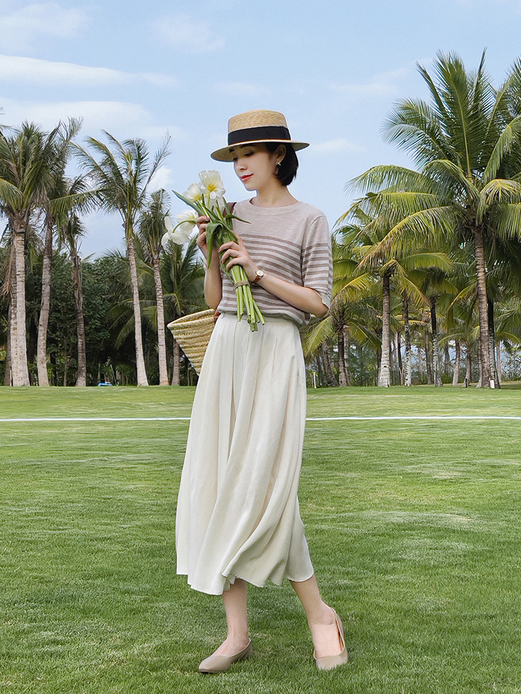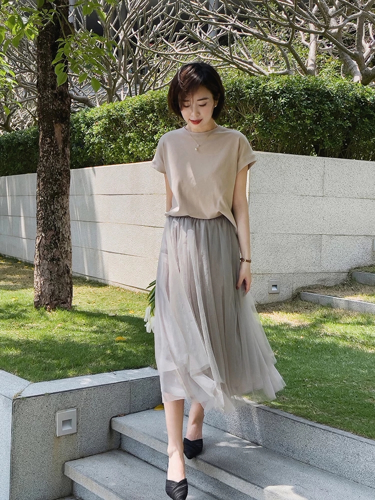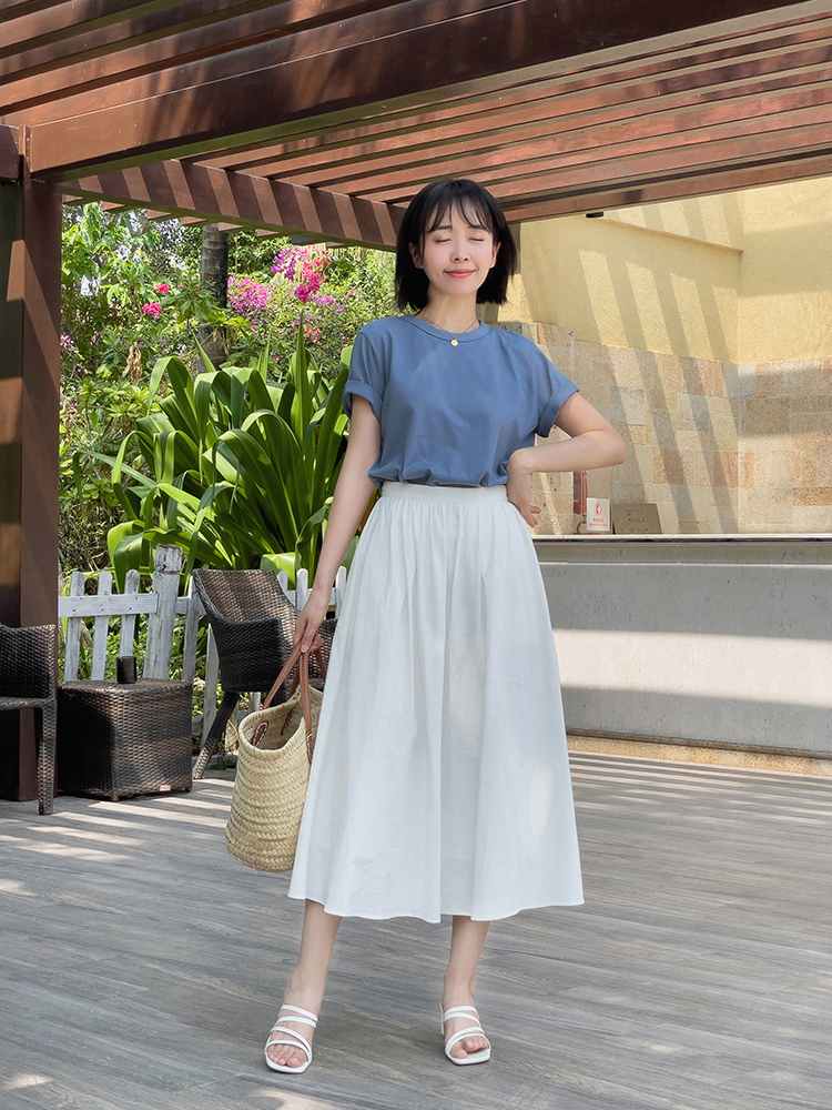 3. Áo phông + chân váy dài
