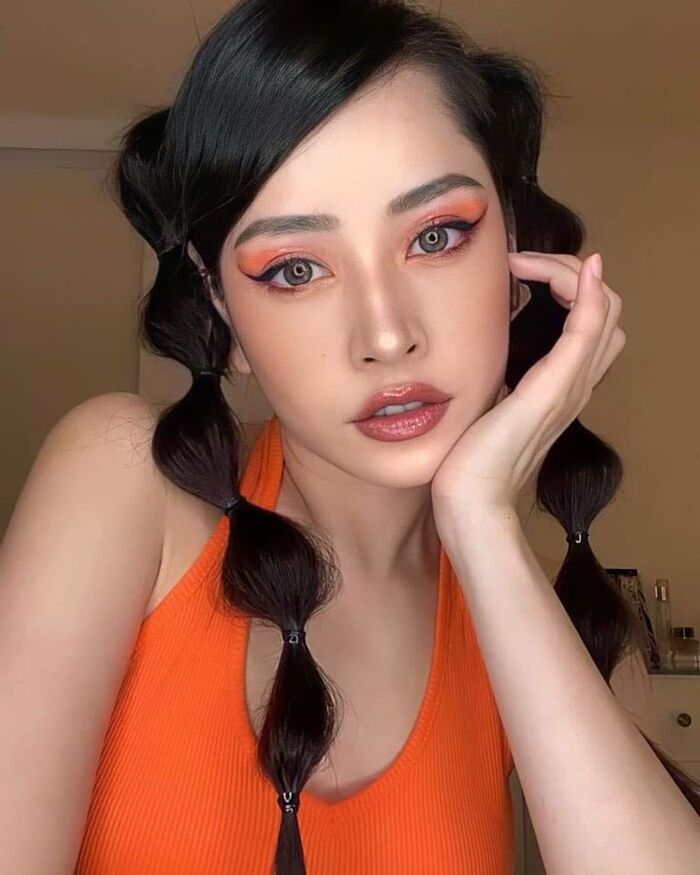 Vài ngày trước, mỹ nhân sinh năm 1993 cũng thử họa mặt mình với tông makeup đậm đà với màu mắt cam cháy sặc sỡ.