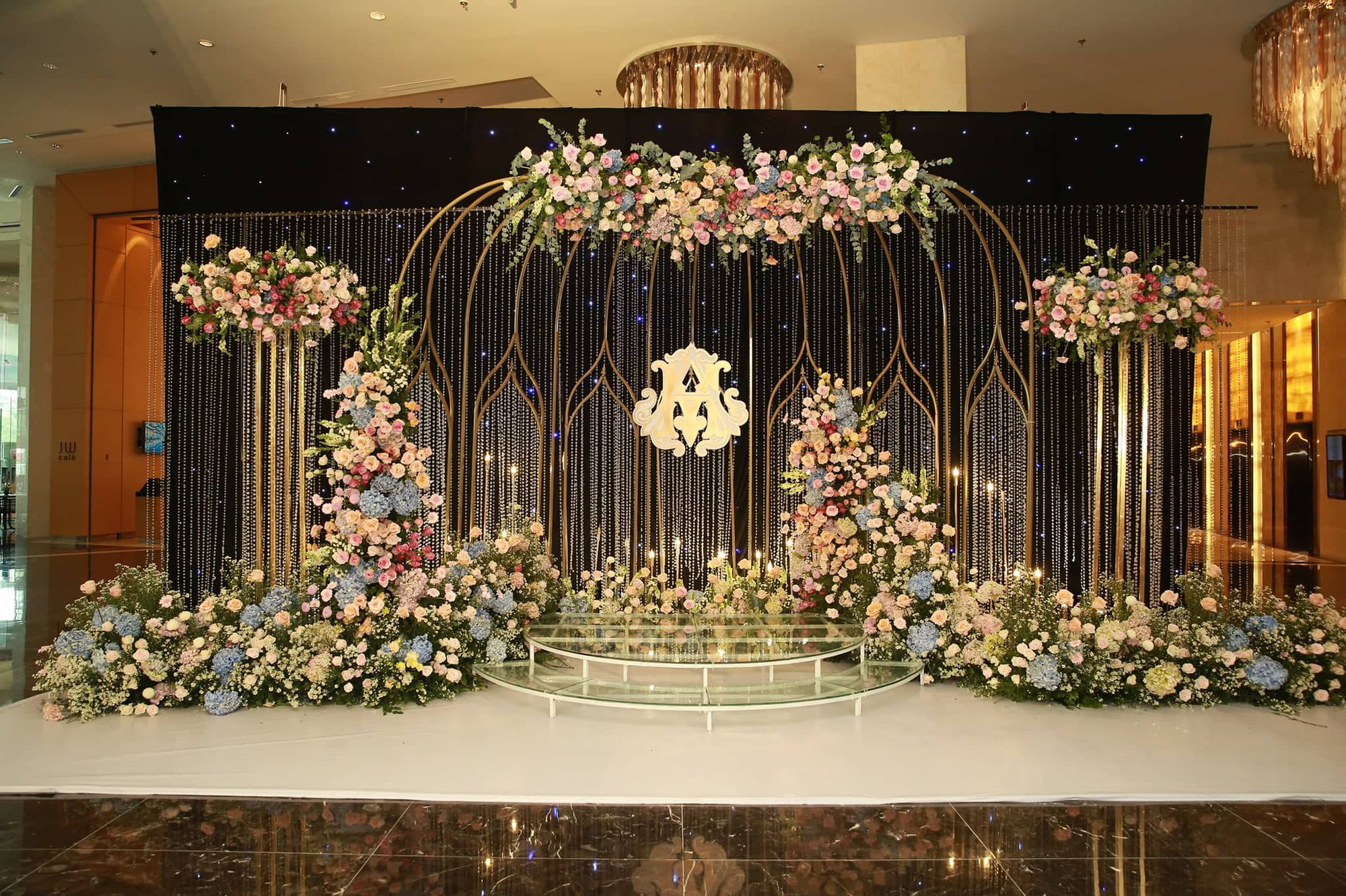 Không gian lễ cưới theo phong cách hoàng gia của Duy Mạnh - Quỳnh Anh thực sự khiến ai cũng phải trầm trồ vì quá đẹp và sang trọng.