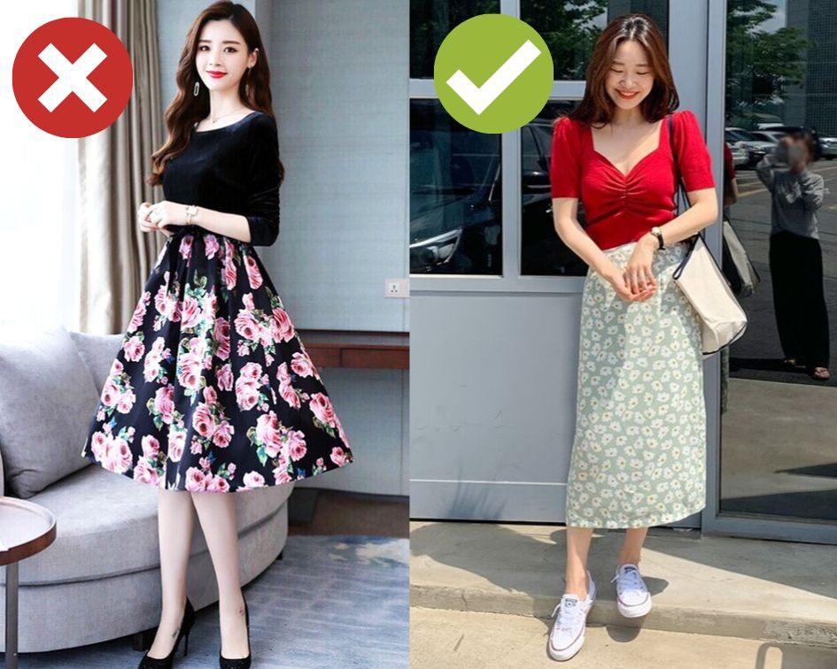 Chân váy cũng là một item rất hợp với mùa thu, và chân váy hoa thì càng "ăn rơ" với không khí dịu dàng, lãng mạn của những ngày nắng nhẹ, gió se se. Nhưng không phải cứ diện chân váy hoa, bạn sẽ có được vẻ ngoài xinh tươi, bay bổng và chuẩn mốt đâu. Hãy bỏ qua những chiếc chân váy hoa bản to, phối màu lòe loẹt – item khiến bạn trông quê kiểng, có chút "đồng bóng" và ưu tiên hơn chân váy hoa nhí, màu sắc nhã nhặn nhé!
