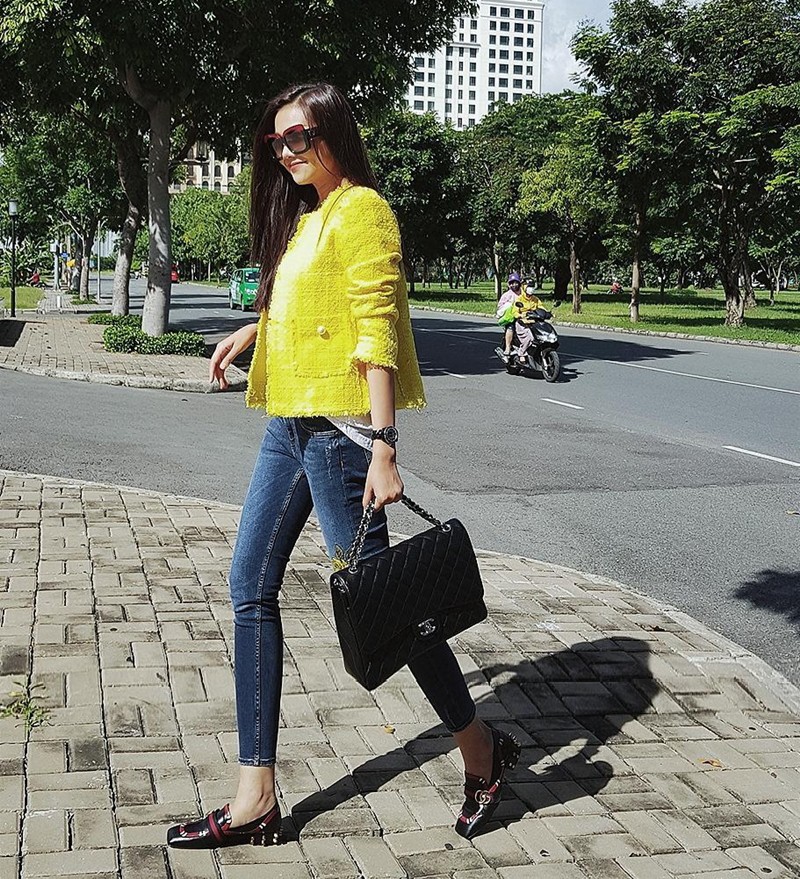 Với phong cách và phong thái của tiểu thư đài các, những bộ đồ Linh Rin chọn đều vô cùng tinh tế sang chảnh và không thiếu những món phụ kiện hàng hiệu đắt giá, thậm chí có nhiều món đồ còn đụng hàng với cả loạt mỹ nhân đình đám trong Vbiz.