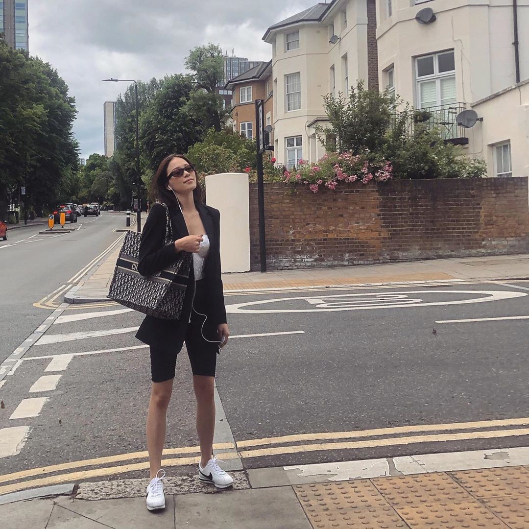 Diện đầm trắng tinh khôi, Linh Rin khéo kết hợp cùng túi xách và cao gót đen cổ điển. Hoặc không thì thanh lịch với set đồ họa tiết duyên dáng. Chiếc túi mà cô nàng cầm trên tay là của nhà mốt Chanel, chiếc túi thường xuyên được Linh Rin diện mỗi khi sóng đôi cùng bạn trai thiếu gia. Chiếc túi có giá khoảng 130 triệu đồng.