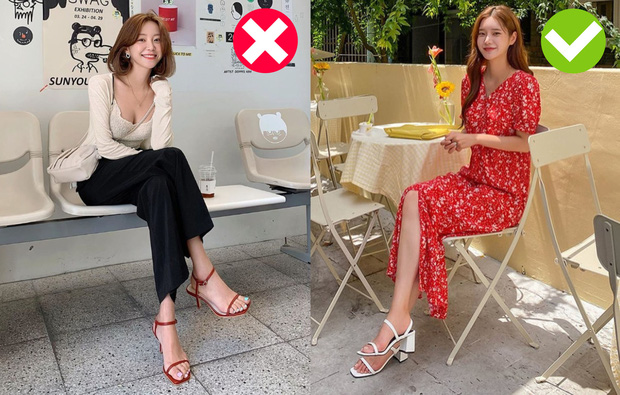 Giày cao gót là item không thể thiếu của nhiều cô gái. Tuy nhiên, để diện giày cao gót cho đẹp và nịnh dáng hơn thì hội chị em có bắp chân to nên hạn chế giày gót nhọn vì chúng được cho là "thủ phạm" khiến bạn trông tăng cân. Nghe có vẻ khó hình dung nhưng chung quy là những đôi giày cao gót sẽ làm phần gót chân mảnh mai nhưng phần bắp chân vẫn to, tạo nên tổng thể không cân đối và đây chính là điểm gây chú ý người đối diện. Ngược lại, nếu chọn một đôi giày cao gót có phần đế dày dặn hơn thì đôi chân sẽ trông "ổn áp", tỷ lệ cơ thể chuẩn hơn vài phần.