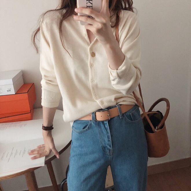 Bên cạnh áo len mỏng dài tay, thì những kiểu áo len cổ chữ V cũng là item các quý cô công sở nên tăm tia lắm đấy. Để diện đến đâu, đẹp đến đó, bạn cũng nên chú ý đến việc chọn tông màu và chất liệu nữa. Tips là hãy ưu tiên những tông màu nhẹ nhàng, nịnh mắt như kem/beige và rước về những chiếc áo đừng quá dày hay quá mỏng, nhằm giữ ấm tốt nhưng trông không quá bức bối, nặng nề.