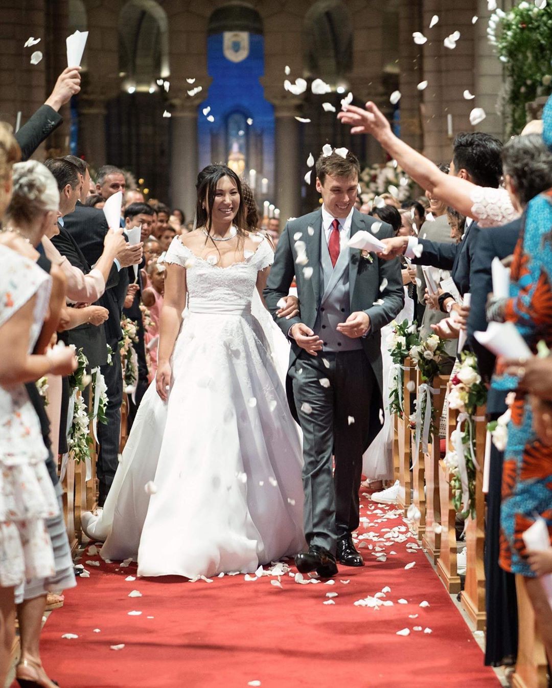 Đám cưới diễn ra tại Nhà thờ đá Monaco, trước sự chứng kiến và chúc phúc của nhiều thành viên Hoàng gia cấp cao. Cô dâu gốc Việt diện 3 bộ váy cưới nhẹ nhàng đơn giản tôn trọn nhan sắc đậm chất Á Đông của Marie Chevallier.