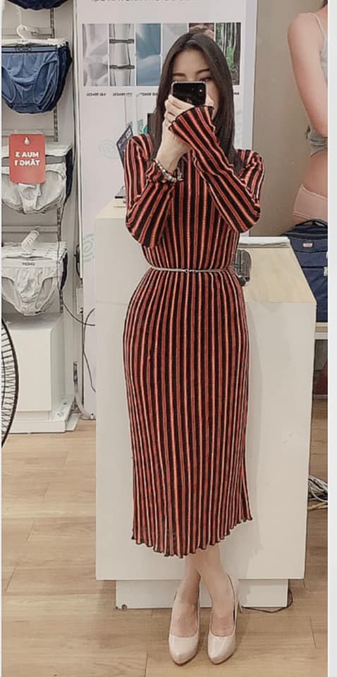 Dây lưng được sử dụng cả khi mặc váy dài lẫn váy ngắn. Nếu không sử dụng dây lưng, cô nàng này sẽ chọn những mẫu váy ôm có điểm nhấn ở eo như rút nhún, xếp ly hoặc thắt nơ giúp ăn gian chiều cao hiệu quả.