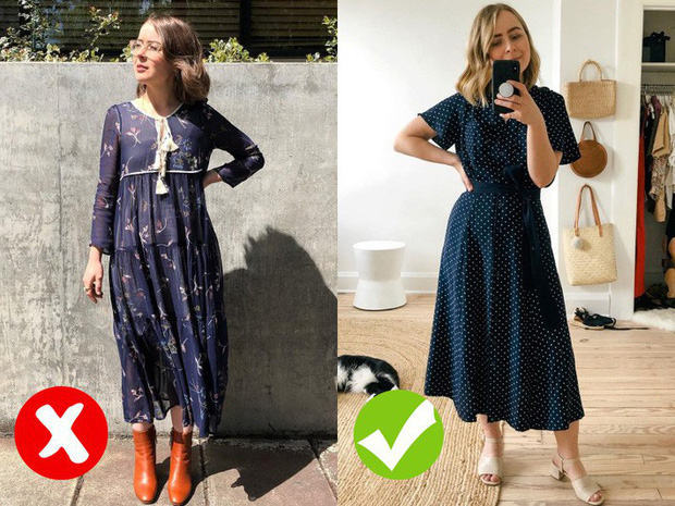 Thay vì những thiết kế váy liền dáng dài kiểu vintage, bạn có thể lựa chọn những kiểu váy liền với phần thắt đai, thiết kế này sẽ giúp bạn nhìn gọn gàng hơn. Bên cạnh đó đừng quên chọn cho mình một đôi sandals hay giày cao gót nhé.