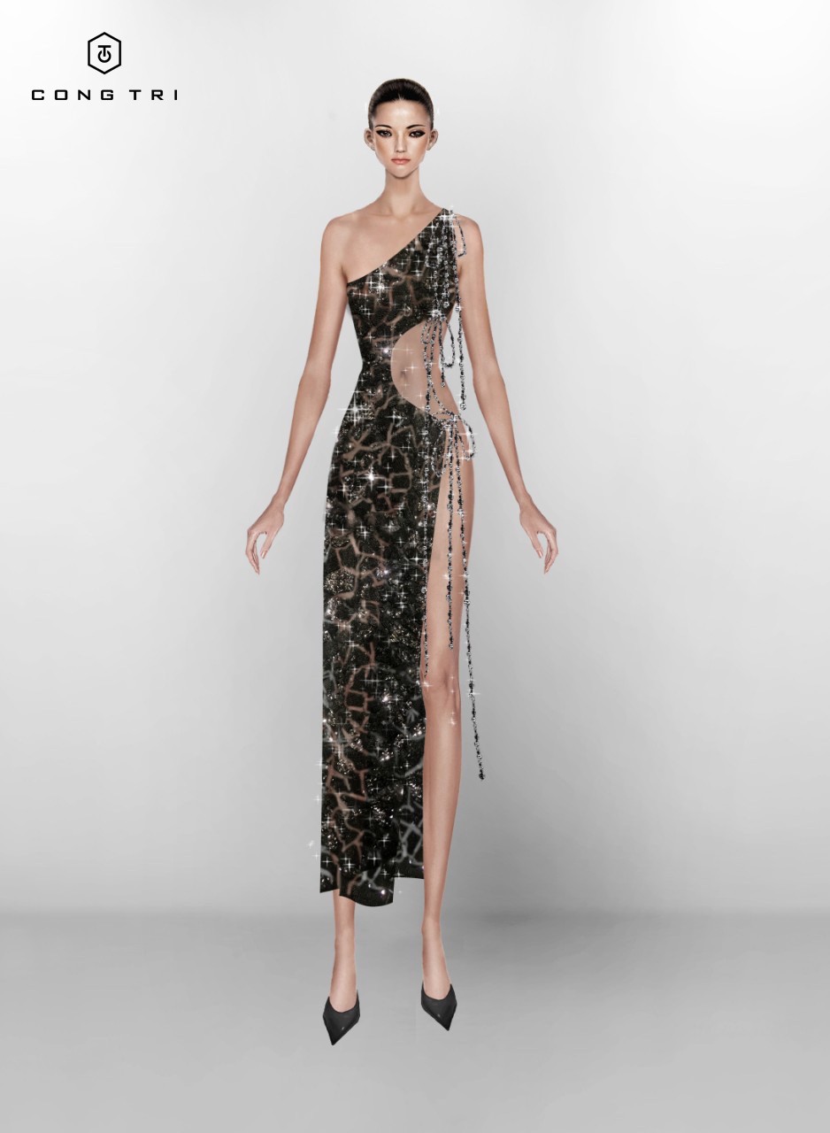 Nhiều khán giả nhận định, mẫu đầm táo bạo này dường như được “đo ni đóng giày” cho Miley Cyrus – người đang theo đuổi hình tượng phụ nữ trưởng thành, quyến rũ pha một chút nổi loạn. Mẫu đầm được NTK Công Trí thiết kế bằng chất liệu lưới pha nhiều mảng sequin lấp lánh, tạo hiệu ứng bắt sáng bóng bẩy, mang đến cảm giác mạnh mẽ và đầy tính ngẫu hứng. Điểm đặc sắc của sáng tạo còn nằm ở các chi tiết cut-out táo bạo, giúp khoe trọn đường cong gợi cảm của nữ ca sĩ người Mỹ một cách tinh tế, không phô trương nhưng vẫn rất ấn tượng. Có thể thấy, mẫu thiết kế đã giúp Miley Cyrus phô diễn “trọn vẹn sự mạnh mẽ ấn tượng cùng tinh thần nữ quyền”.
