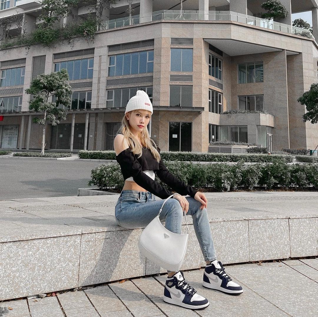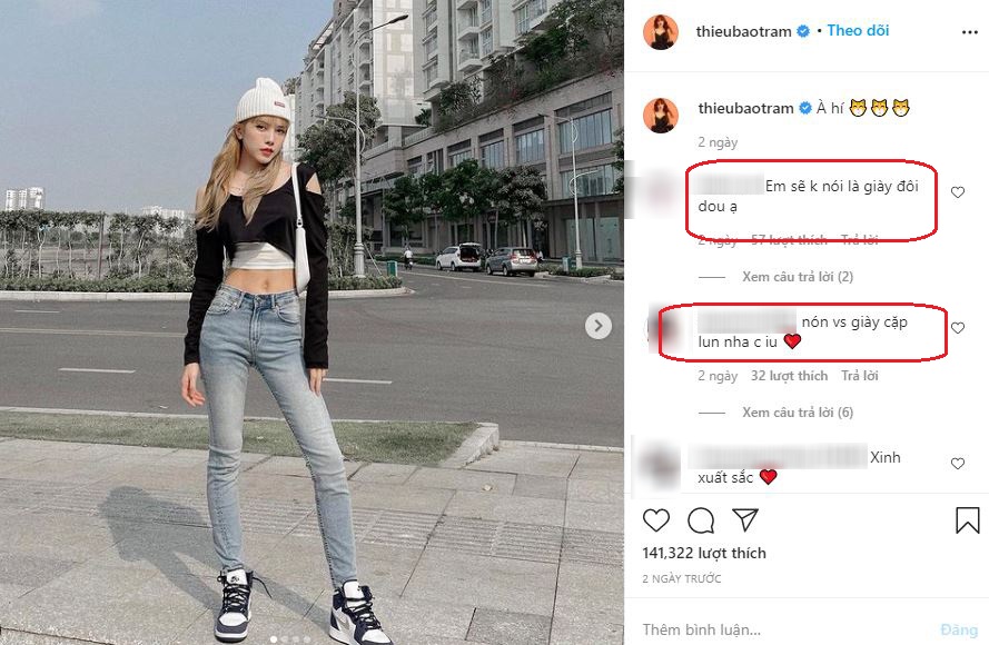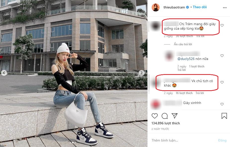 Chiếc mũ beanie của Thiều Bảo Trang cũng chính là chiếc mũ từng góp mặt trong rất nhiều outfit cá tính của "chủ tịch". Đôi sneaker Nike cũng từng là chủ đề "bàn luận" của fan khi cả Thiều bảo Trang và Sơn Tùng đều thường xuyên đi đôi giày này xuống phố hay những chuyến du lịch cùng nhau.