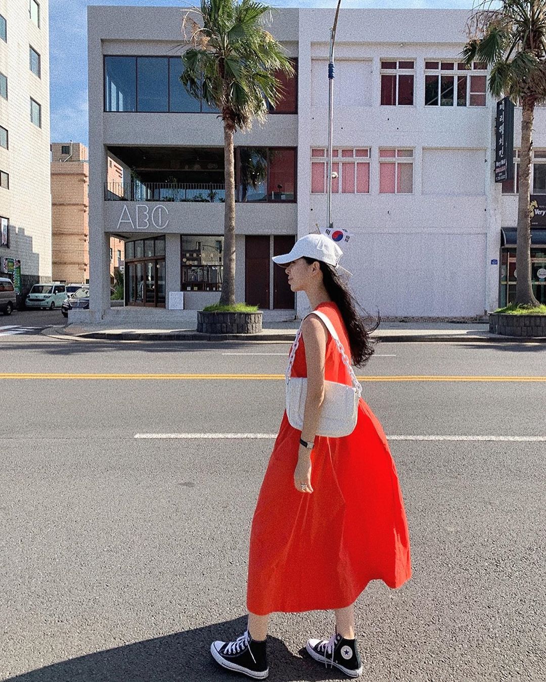 Nét phóng khoáng đã giúp váy hai dây trở thành item hoàn hảo để bắt cặp với giày sneaker. Và ngay cả khi song hành với kiểu giày năng động như vậy, nét bay bổng, nữ tính của váy hai dây cũng không hề mất đi. Bạn cũng đừng quên là váy hai dây không chỉ có độc một cách diện, bạn có thể layer với áo thun, hoặc khác bên ngoài áo sơ mi để tạo nên set đồ mới mẻ; và mix theo cách nào thì cũng hợp với giày sneaker hết.
