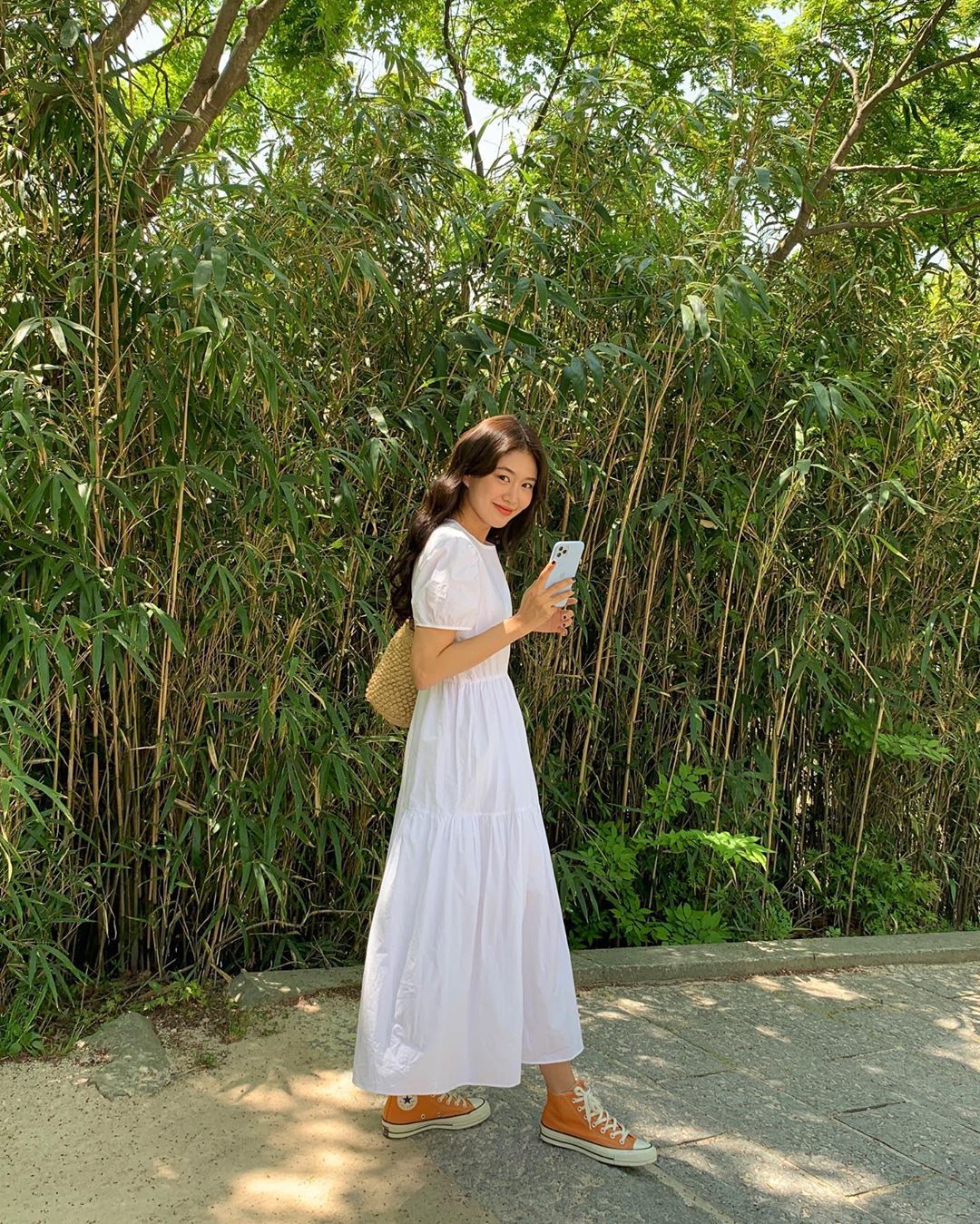 Sự xuất hiện của đôi sneaker sẽ giúp set váy trắng của bạn thêm thú vị, hút mắt, độ trẻ trung cũng sẽ tăng vọt. Và bạn cứ yên tâm rằng, nét thanh lịch, trang nhã vốn có của váy trắng nói chung vẫn sẽ được giữ nguyên. Cuối cùng, đừng chỉ mix váy trắng với những đôi giày màu trung tính; bạn hãy thử chọn đôi giày màu mè một chút xem, set đồ sẽ nổi bật và trẻ trung hơn hẳn đấy.