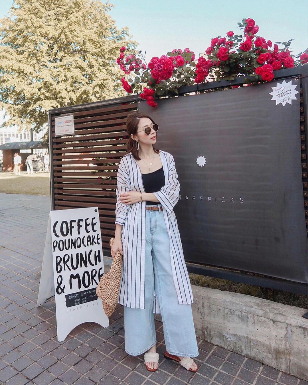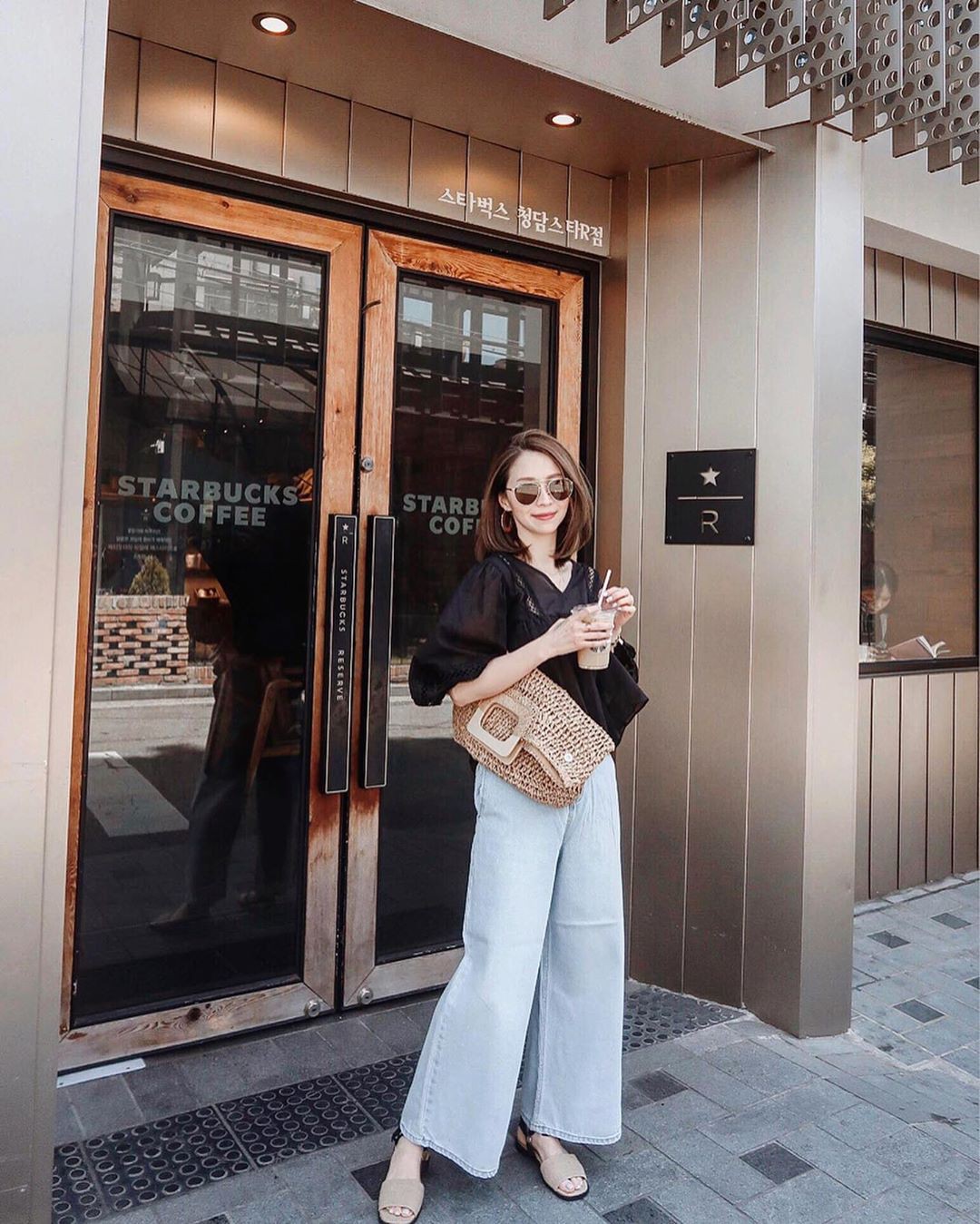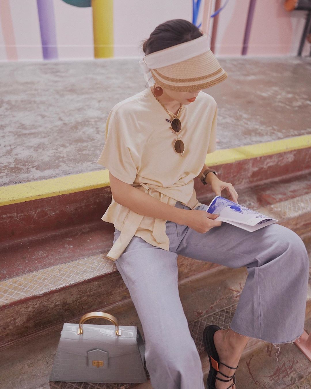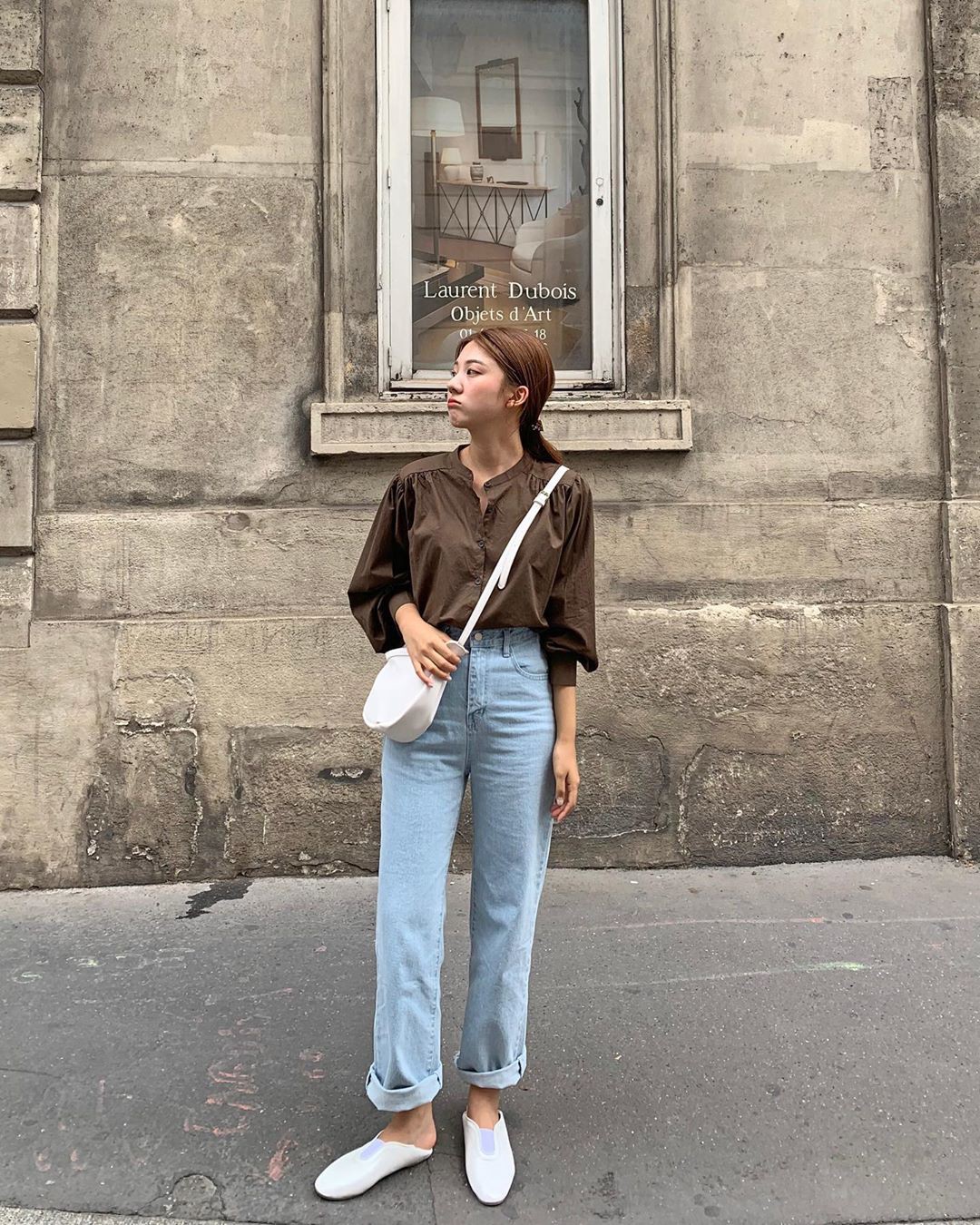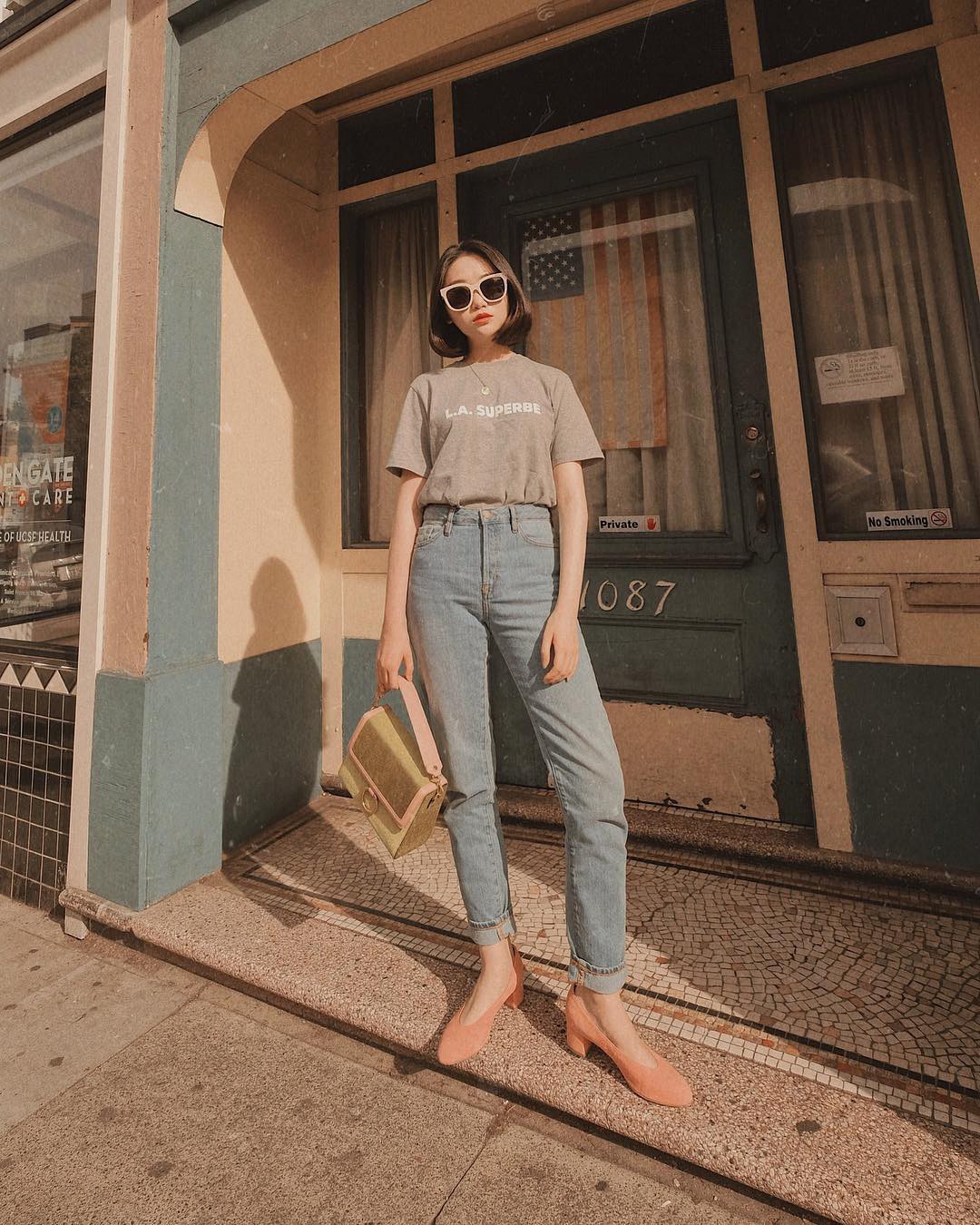 Mix&match với quần jeans xanh nhạt cũng không có gì khó. Tuy nhiên, để tối ưu khả năng hack tuổi và tăng vẻ nổi bật cho set đồ, bạn cứ mạnh dạn kết đôi quần jeans xanh nhạt với những items mang gam màu tươi sáng; kết lại bằng một đôi sneakers, loafers, mule là đẹp chẳng chê được chỗ nào. Nếu đặt trong bối cảnh công sở, sự kết hợp của quần jeans xanh nhạt với những items nghiêm túc như áo sơ mi, áo blouse sẽ cho bạn một vẻ ngoài thanh lịch không hề kém những lúc bạn diện quần jeans trắng.