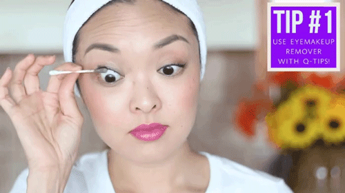 Có một khu vực nhỏ xíu mà bạn rất dễ lãng quên khi tẩy trang; hoặc có động tay đến nhưng vẫn làm sạch không kỹ, đó là bờ mi mắt – nơi mascara, chì kẻ mắt tích tụ theo thời gian và khiến mắt bạn bị viêm nhiễm, kích ứng. Cách hữu hiệu nhất để làm sạch vùng nhạy cảm này chính là sử dụng bông tăm, thấm dung dịch tẩy trang dành riêng cho vùng mắt và nhẹ nhàng đưa đầu bông gòn quét sạch tàn dư của mascara, phấn mắt, eyeliner... như vậy là bạn đã hoàn thành xong nhiệm vụ.