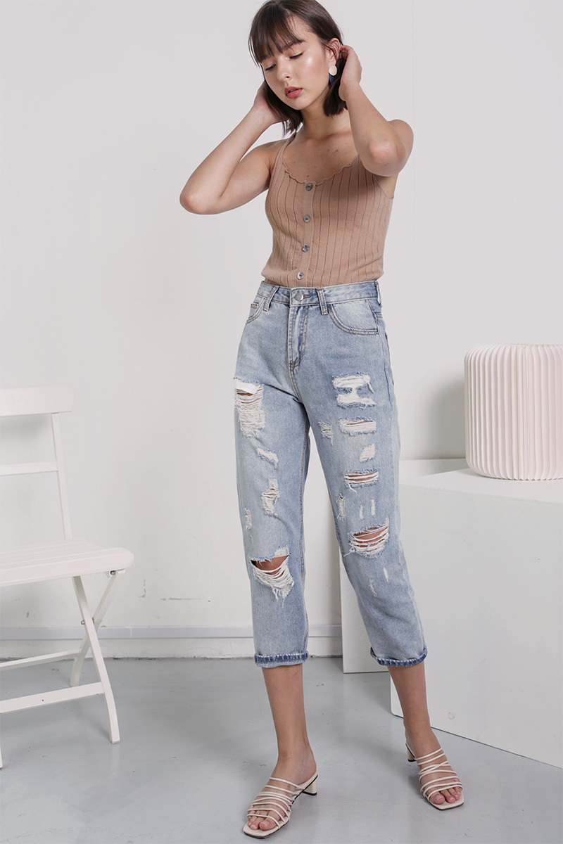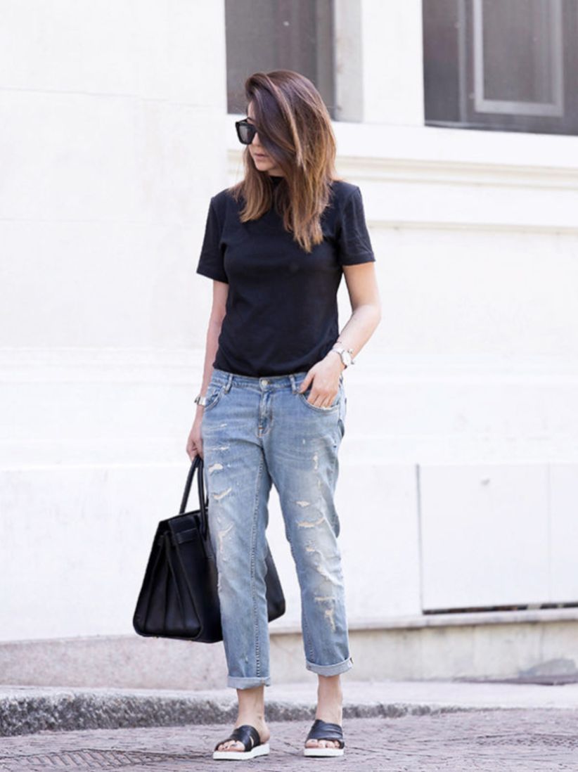 Quần boyfriend jeans nổi bật với những mảng rách và chi tiết xắn gấu, đồng thời có phom dáng khá rộng rãi, thoải mái. Kiểu quần này trông rất cá tính, phủi bụi nhưng không được đánh giá cao lắm ở sự thanh lịch, tinh tế. Bên cạnh đó, quần boyfriend jeans tương đối khó tính, không phải nàng nào diện lên cũng đẹp và thu hút.