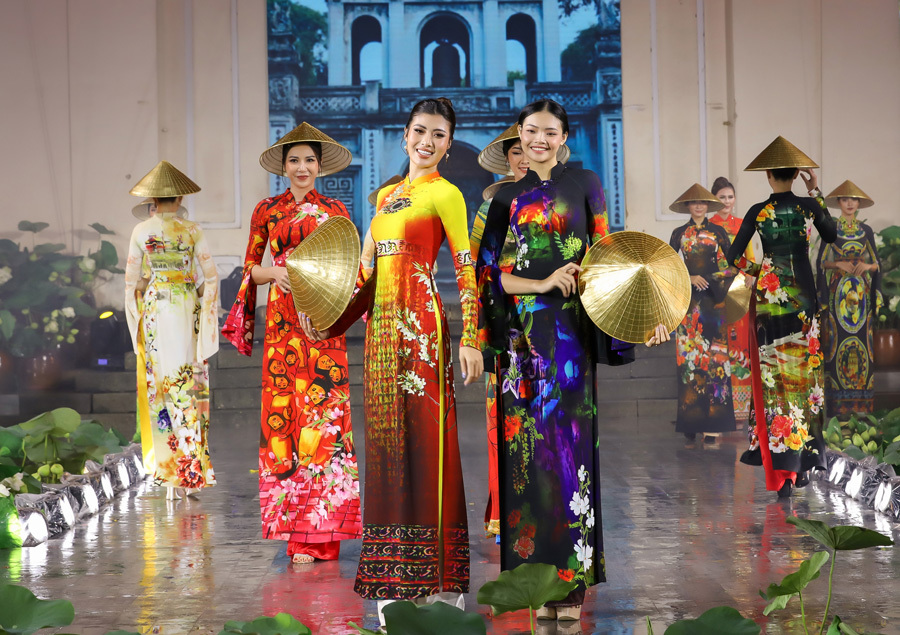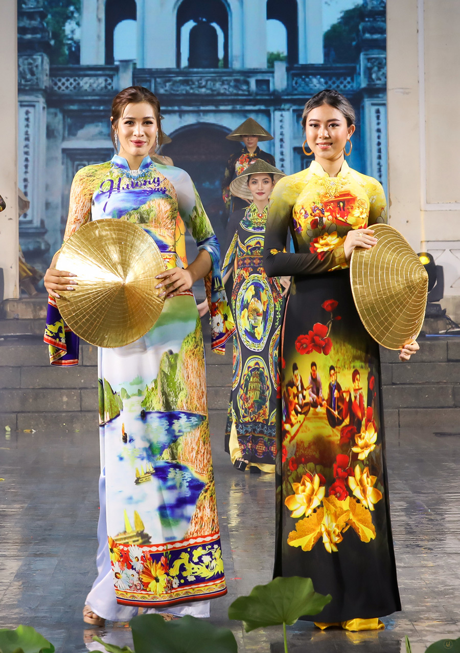 Những di sản văn hóa, thiên nhiên được đưa vào các thiết kế áo dài có thể kể đến như: Tín ngưỡng Hùng Vương, Di sản Mộc bản chùa Vĩnh Nghiêm, Di sản Ca trù, Cố đô Huế, Tràng An - Ninh Bình, Đờn ca tài tử Nam Bộ, Chợ Bến Thành...