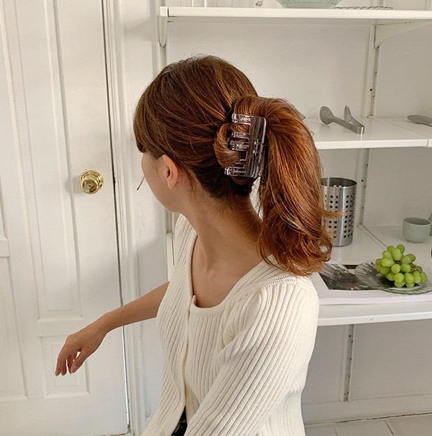 Kiểu tóc buộc thấp trông thùy mị, đằm thắm là vậy nhưng nếu bạn thay thế chun buộc bằng kẹp càng cua, diện mạo lập tức trở nên phóng khoáng và "chơi" hơn rất nhiều.