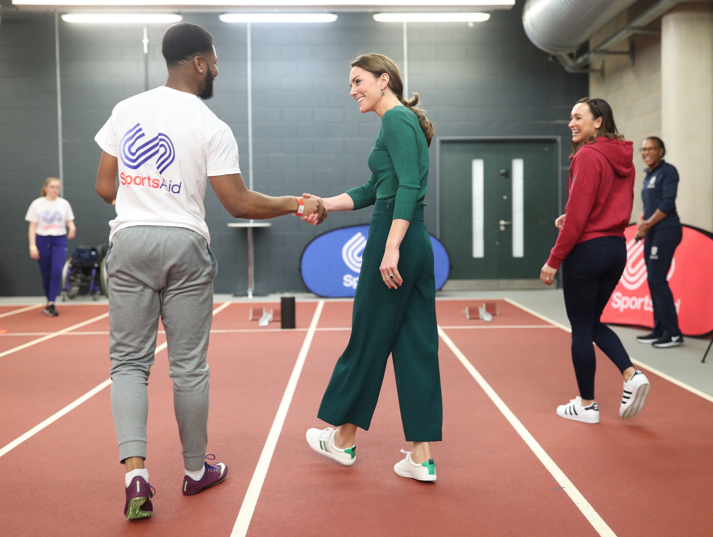 Việc hé lộ một khoảng vừa phải của đôi chân đã mang đến hiệu ứng cao ráo, thoáng mắt hơn cho set đồ, đồng thời giúp tổng thể trang phục thêm phần trẻ trung. Hiệu quả hack tuổi lại càng được phát huy tối ưu khi Công nương Kate chọn một đôi giày sneakers trắng. Và gam màu trắng tinh tươm cũng là điểm "đắt giá" giúp đảm bảo, người diện vừa có được vẻ tươi trẻ, vừa thanh lịch chuẩn công sở.