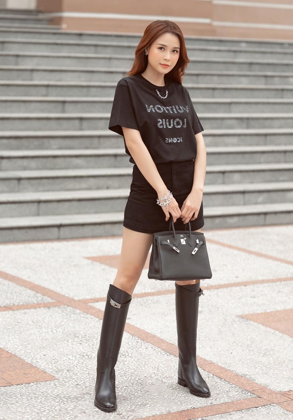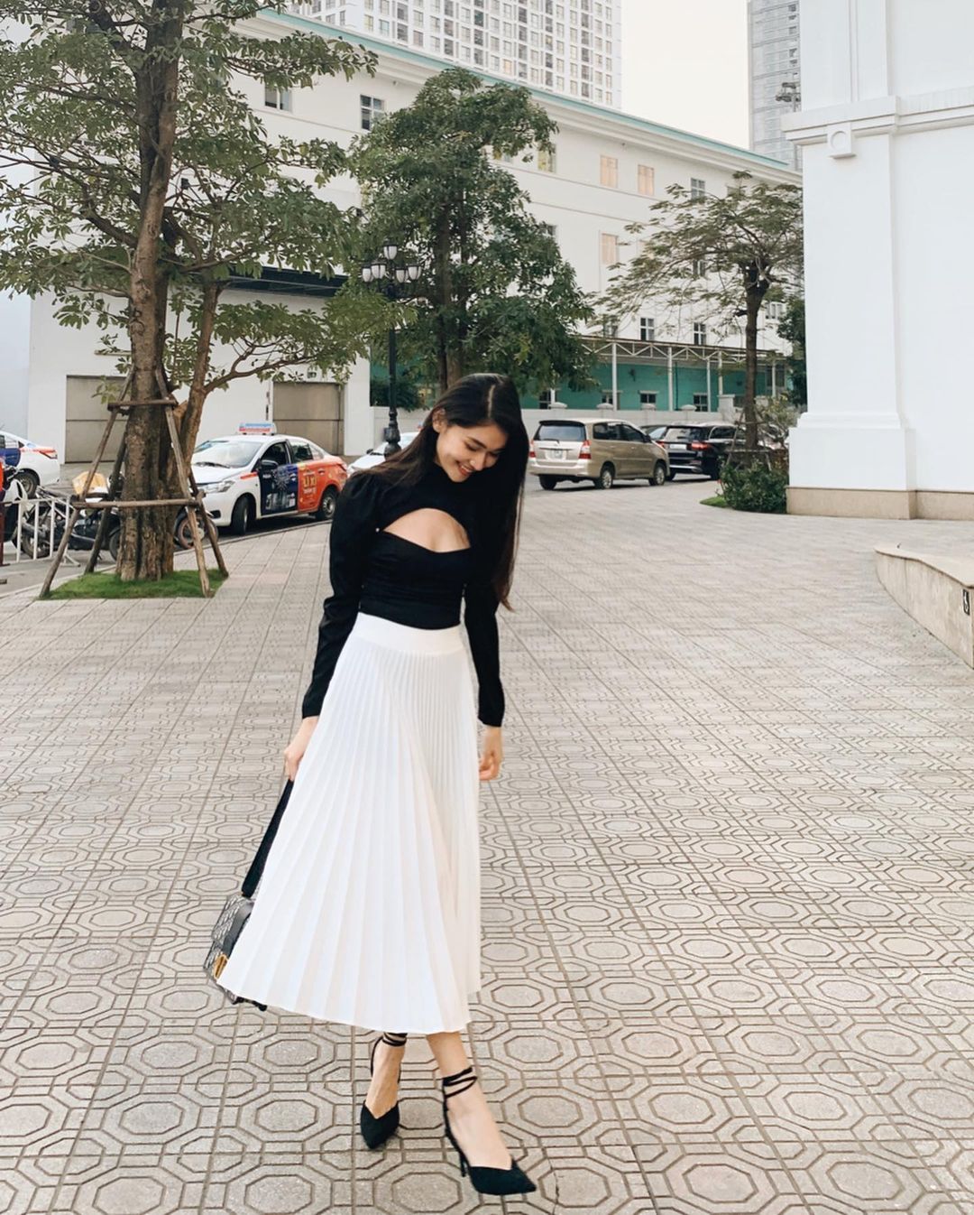 Dễ mặc, dễ đẹp nhất vẫn luôn là những chiếc chân váy mang gam màu đen. Bạn sẽ không phải suy nghĩ quá nhiều khi mix&match item thân thiện này. Dẫu vậy, để vẻ ngoài đạt ngưỡng trang nhã và sang xịn level max thì việc kết hợp chân váy đen với những items mang gam màu trung tính như cách Hà Tăng, HH Thu Thảo hoàn thiện style cũng rất đáng để chị em học hỏi.