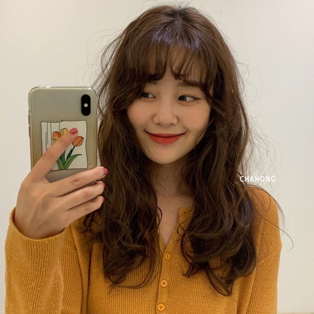 Tóc xoăn mái mưa là một kiểu tóc vô cùng ngọt ngào, tươi xinh. Và vẻ ngoài của bạn sẽ còn "tây tây", nhan sắc thăng hạng hơn nữa nếu nhuộm nâu cho mái tóc. Kiểu tóc xoăn mái mưa, nhuộm nâu sẽ tạo hiệu ứng sáng hồng cho làn da, bạn sẽ không cần phải trang điểm quá đậm, chỉ makeup nhẹ nhàng thôi là vô cùng rạng rỡ.