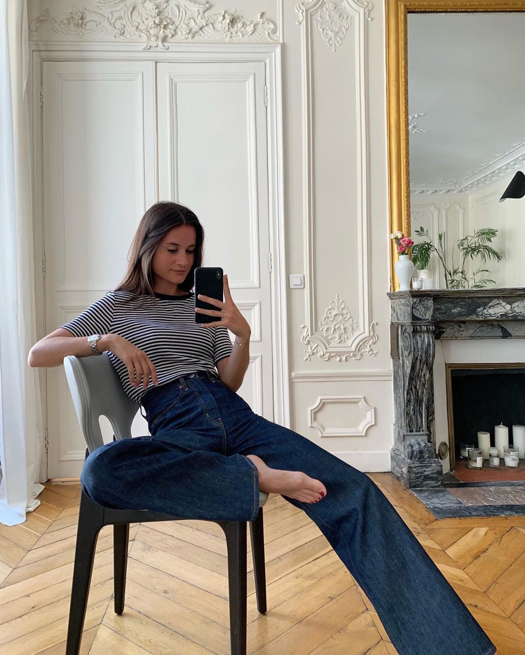 Quần jeans cũng có nhiều mẫu đủ thanh lịch để chị em mặc đến công sở. Tuy nhiên, muốn vẻ ngoài trông thật thời thượng và sang chảnh, quần jeans ống suông hay ống rộng sẽ là lựa chọn lý tưởng hơn tất thảy. Khi diện những mẫu quần jeans này, phụ nữ Pháp không bao giờ bỏ qua thao tác sơ vin để vẻ ngoài thêm phần chỉn chu, thanh lịch và vóc dáng cũng được hack tuyệt đối.
