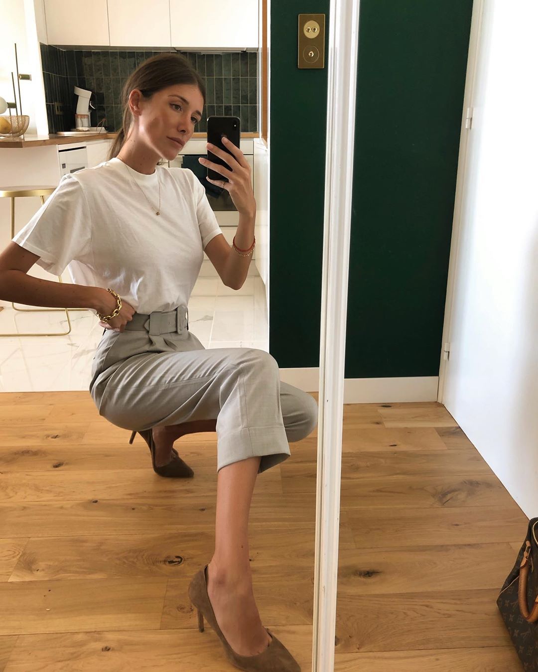 Bạn cũng không nên loại bỏ áo t-shirt ra khỏi list đồ diện đi làm. Có kha khá kiểu áo phông vẫn đủ điều kiện để mặc nơi công sở, chẳng hạn như áo t-shirt trắng trơn màu. Phụ nữ Pháp rất chuộng item này, họ cũng mix theo những cách rất đơn giản như kết hợp với quần jeans ống đứng, ống loe hay chân váy suông… nhưng dù lựa chọn của họ là gì, áo t-shirt trắng cũng có thể tạo nên những set đồ trẻ trung và xịn mịn.