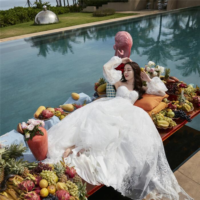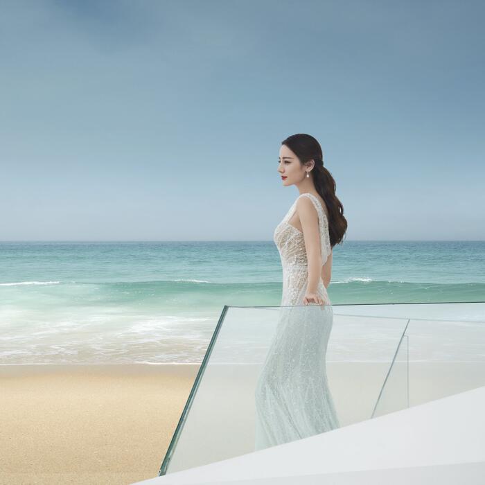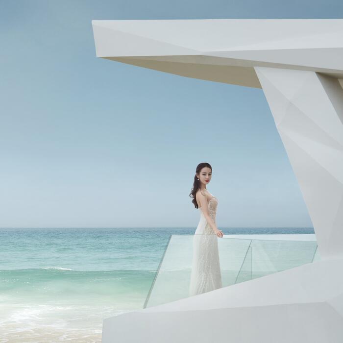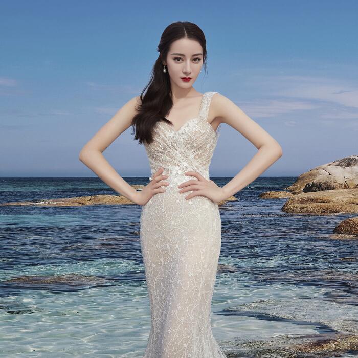 Mới đây, Địch Lệ Nhiệt Ba - mỹ nhân 9X đẹp nhất nhì làng giải trí Hoa ngữ đã khiến các khán giả ngây ngất khi khoe nhan sắc xinh đẹp không tì vết trong mẫu váy cưới màu trắng tinh khôi trên bãi biển thơ mộng. Với vóc dáng hoàn mỹ, chiếc váy đuôi cá ôm sát giúp nàng 'mỹ nhân Tân Cương' khoe trọn vẹn đường cong mơ ước. Đặc biệt, khuôn mặt quá đỗi xinh đẹp cùng góc nghiêng 'thần thánh' của Địch Lệ Nhiệt Ba khiến cư dân mạng Weibo 'dậy sóng' và không tiếc lời khen ngợi cô nàng.