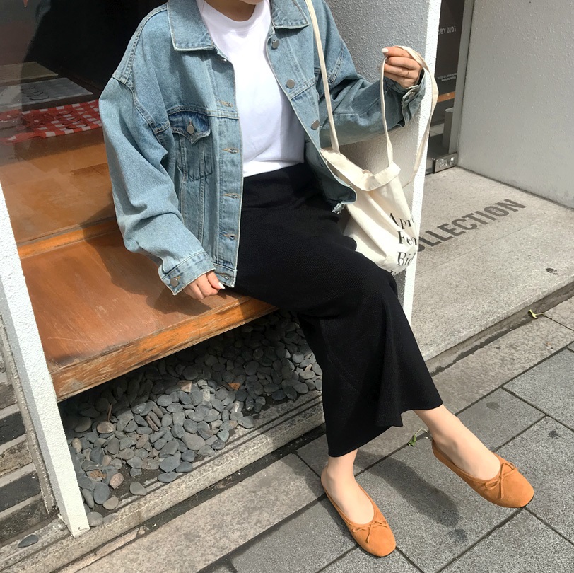Giày búp bê kết hợp với chân váy là chuyện rất đỗi thường tình rồi. Nhưng ở hiện tại, trong muôn kiểu giày búp bê thì phiên bản được gắn nơ mảnh mai, nhỏ nhắn là phủ sóng mạnh mẽ nhất. Nét dịu dàng, tao nhã của giày búp bê gắn nơ thực sự ăn nhập tuyệt đối với nét nữ tính của chân váy, giúp người diện có được vẻ ngoài thanh lịch, trang nhã chứ chẳng hề sến chút nào.