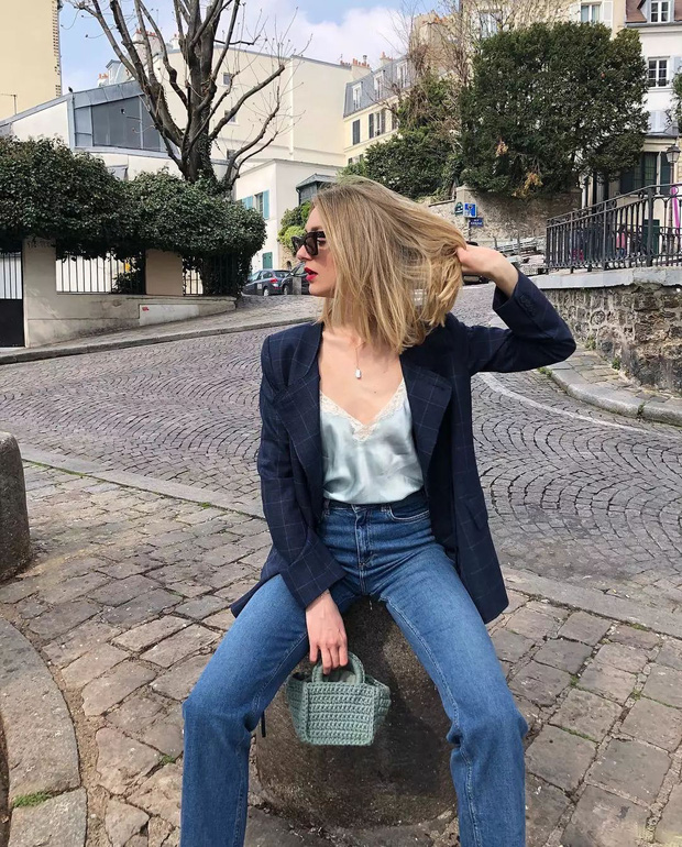 Cuối cùng gái Pháp còn đặt trọng tâm lên những chiếc áo bằng satin đơn giản mà sang trọng hết mực. Chi tiết bằng vải bóng này cũng mang cả giác vừa sang trọng vừa cổ điển khiến điểm thần thái của người diện tăng lên vài phần. Bạn có thể chọn diện một chiếc áo sơ mi bằng satin khi đến sở làm, diện áo 2 dây bằng satin khi đi dạo phố cũng đều ổn cả.
