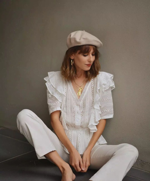 Gái Pháp diện đồ đơn giản nhưng không hề nhàm chán, họ luôn khéo nhấn nhá cho set đồ bằng những chi tiết nhỏ xinh chẳng hạn như phần điểm xuyết bèo nhún trên chiếc áo blouse xinh xẻo. Tuy nhiên họ chỉ chọn những mẫu áo bèo nhún vừa phải, điệu đà nhưng không sến súa; cùng với đó sẽ mix cùng những item đơn giản, trơn màu để tránh tổng thể bị rối mắt.