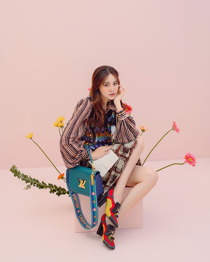Khoác lên mình những bộ cánh nằm trong BST mới nhất của Louis Vuitton, Lan Ngọc hóa quý cô cô điển với phong cách mang hơi hướng những thập niên 70 với những detail chính như tay phồng, họa tiết sọc, caro, zig-zag, vạt cổ lớn,… được remake phá cách.