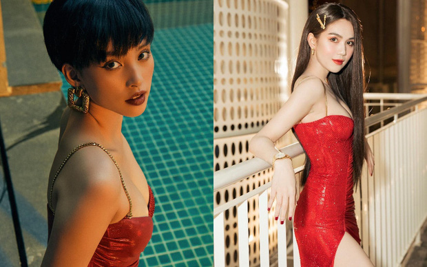 Nhờ visual ngày càng đỉnh nên Hoa hậu Tiểu Vy chẳng e dè trước Ngọc Trinh khi cùng diện đầm hai dây xẻ tà bạo liệt.