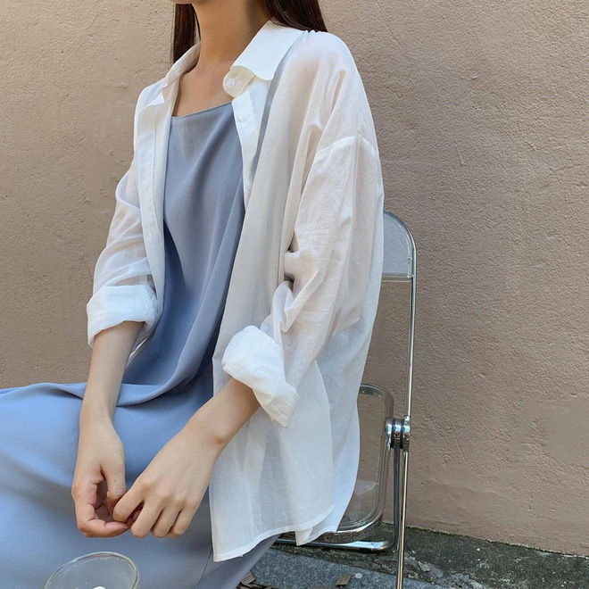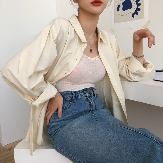 Ngoài việc phối sơ mi với váy, quần jeans thì bạn cũng có thể tận dụng chúng để khoác bên ngoài nữa, để giúp cây đồ layer trông tinh tế, sành điệu hơn. Công thức này phát huy hiệu quả với những hôm bạn diện áo hai dây hoặc váy hai dây nhưng ngại hở, bởi chỉ cần diện thêm sơ mi bên ngoài thì mọi chuyện đã khác hẳn ngay. Những nàng học sinh - sinh viên muốn diện sơ mi xịn đẹp như gái Hàn mà không trông cứng nhắc thì càng nên áp dụng.