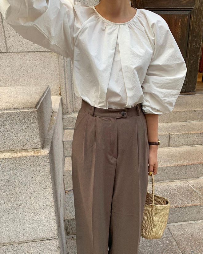 Áo blouse + quần ống suông
