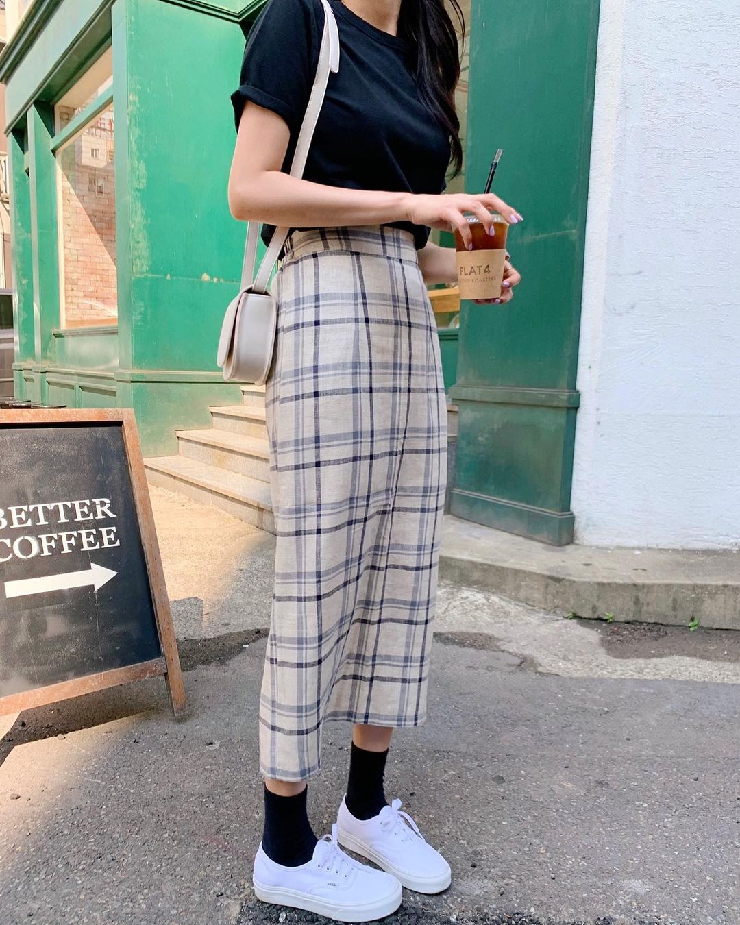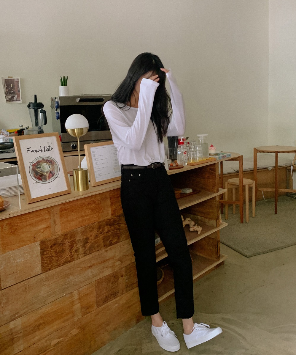 Nét trẻ trung, năng động của sneaker trắng ăn nhập hoàn hảo với bộ đôi áo thun + quần jeans, giúp chị em hack tuổi hiệu nghiệm hơn gấp mấy lần. Và vì sneaker trắng nhìn chung là giày bệt nên nếu muốn cải thiện chiều cao, chị em hãy ưu tiên những mẫu quần jeans dài trên mắt cá chân một chút, đồng thời đừng quên sơ vin gọn gàng, vẻ ngoài sẽ thon thả và cáo ráo hơn hẳn.