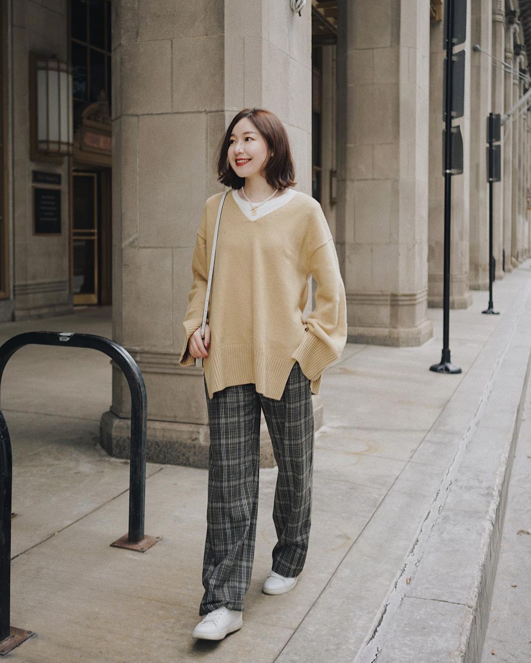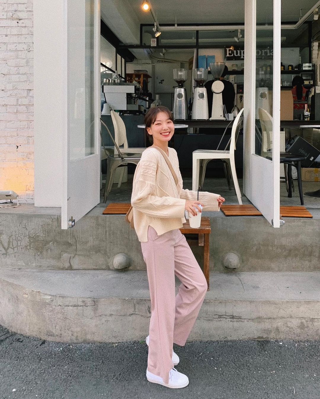 Set áo len + quần ống rộng có thể trông thường thường khi mới mix, nhưng hễ kết lại set đồ bằng đôi sneaker trắng, tổng thể sẽ tăng gấp bội phần sành điệu, xịn sò. Combo áo len + quần ống rộng và sneaker trắng cũng rất thanh lịch, thừa điều kiện để chị em có thể xúng xính đi làm, nhất là khi bạn chọn combo áo quần toàn màu trung tính.