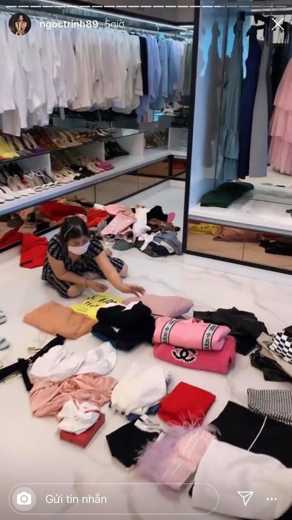 Mới đây, Ngọc Trinh tiếp tục khiến nhiều người ngạc nhiên xen lẫn thích thú khi đăng trên story cá nhân của mình đoạn clip ngắn quay lại cảnh stylist đến nhà và giúp mình dọn dẹp sắp xếp “kho” phụ kiện với cả trăm chiếc túi hiệu đắt giá.