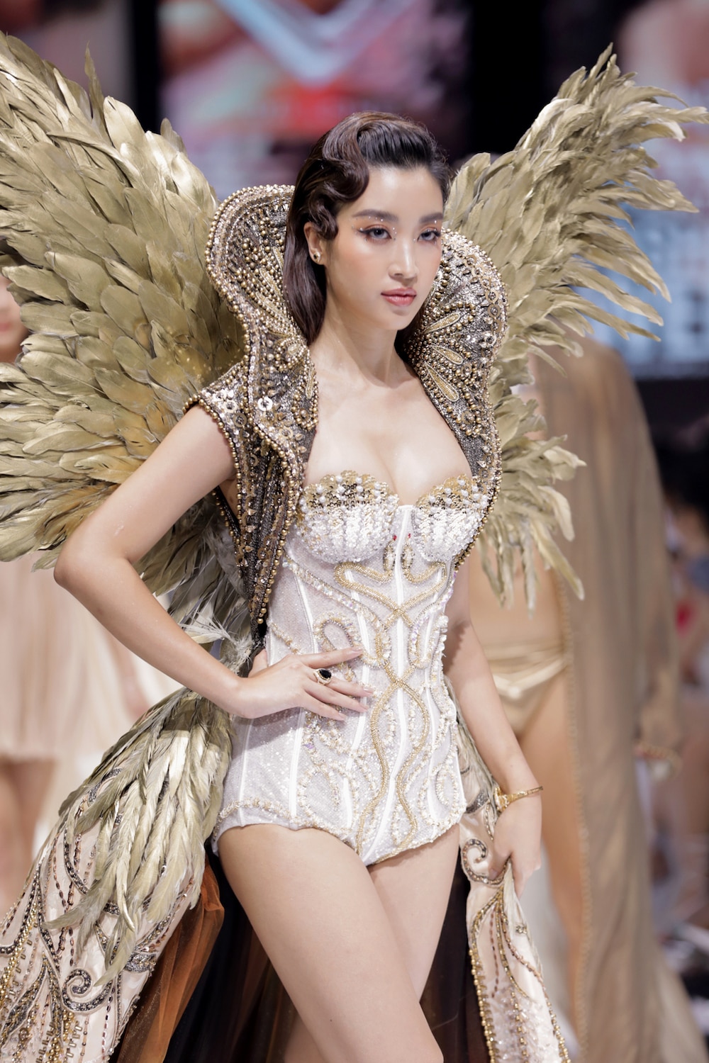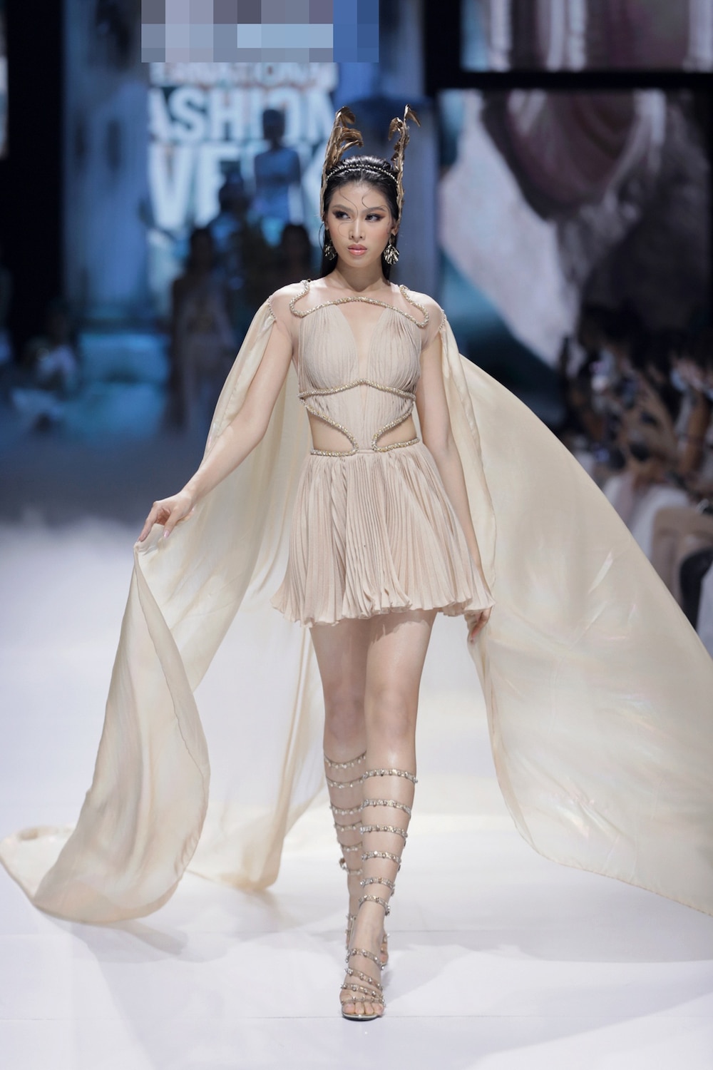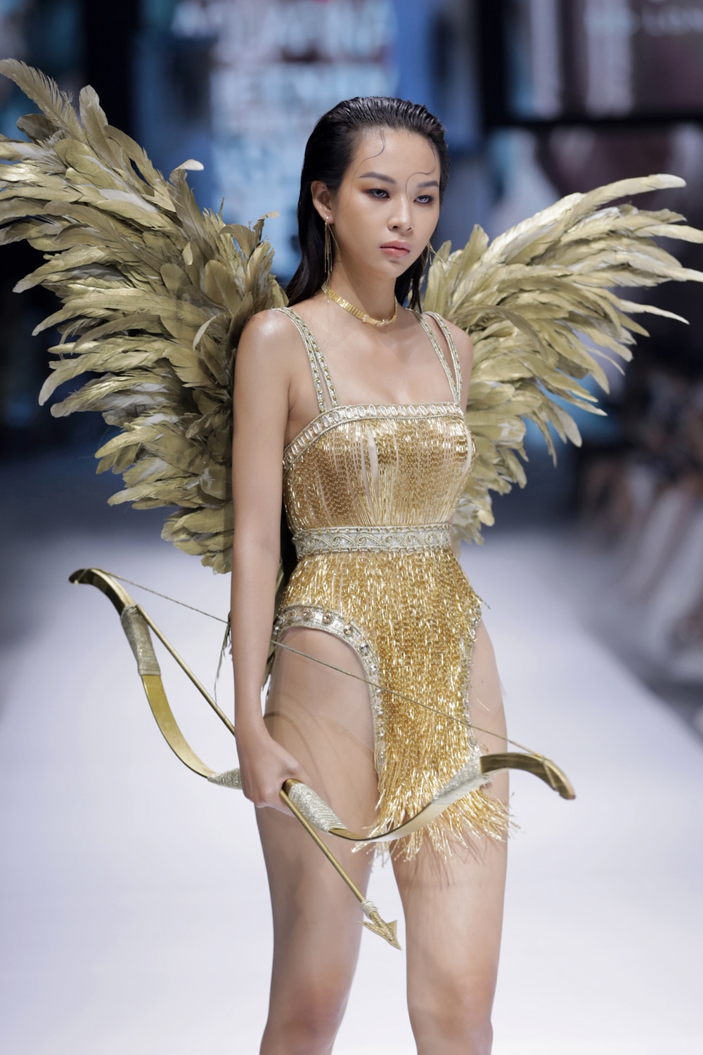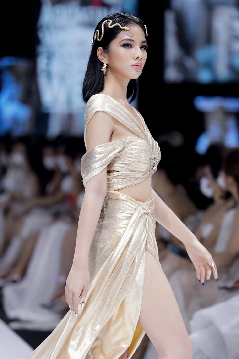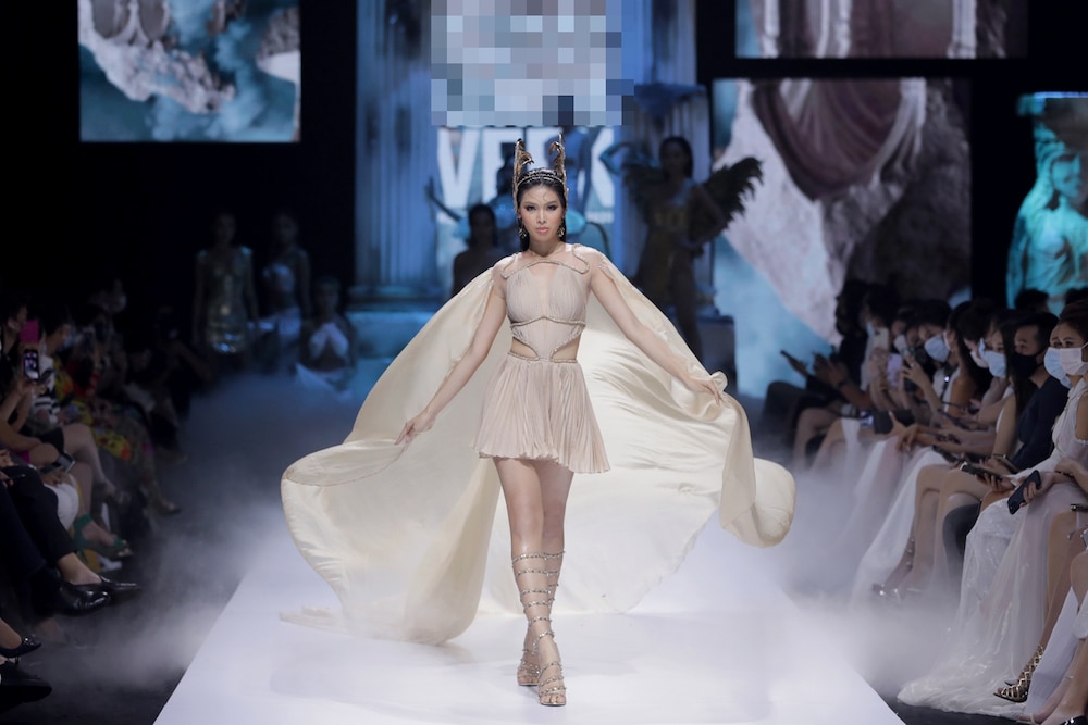Tiếp sau bộ ba Hoa hậu Việt Nam, các người mẫu… lần lượt xuất hiện với những thiết kế mang đậm dấu ấn thần thoại Hy Lạp thông qua họa tiết chỉ vàng, mô phỏng những bức tranh trạm trổ hay hình học đối xứng mang đến cảm xúc thăng hoa cho người xem.